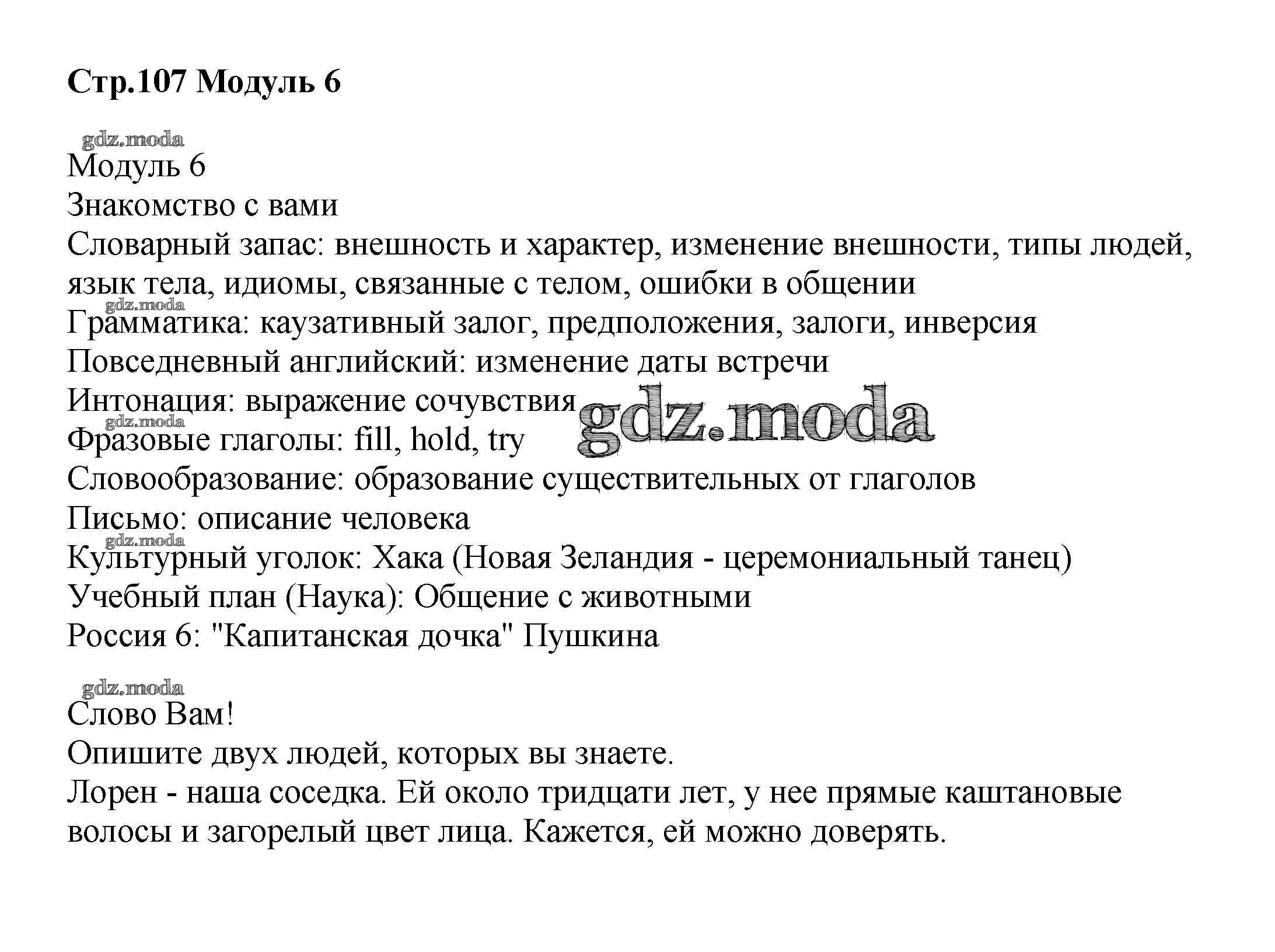 ГДЗ решение к заданию № стр.107 Английский язык 8 класс Starlight Баранова К.М. Просвещение 2016 Углубленный уровень ФГОС бесплатно на гдз.мода!