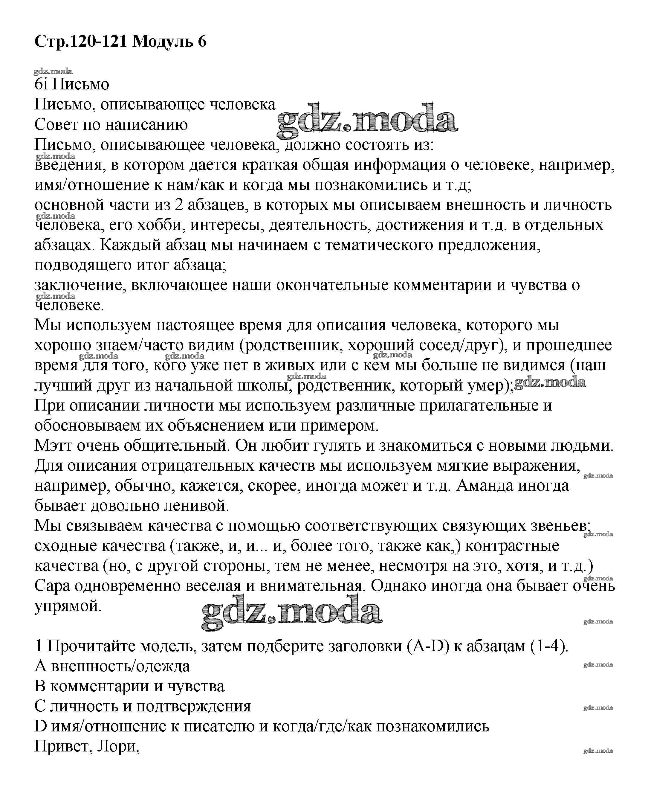 ГДЗ решение к заданию № стр.120-121 Английский язык 8 класс Starlight Баранова К.М. Просвещение 2016 Углубленный уровень ФГОС бесплатно на гдз.мода!