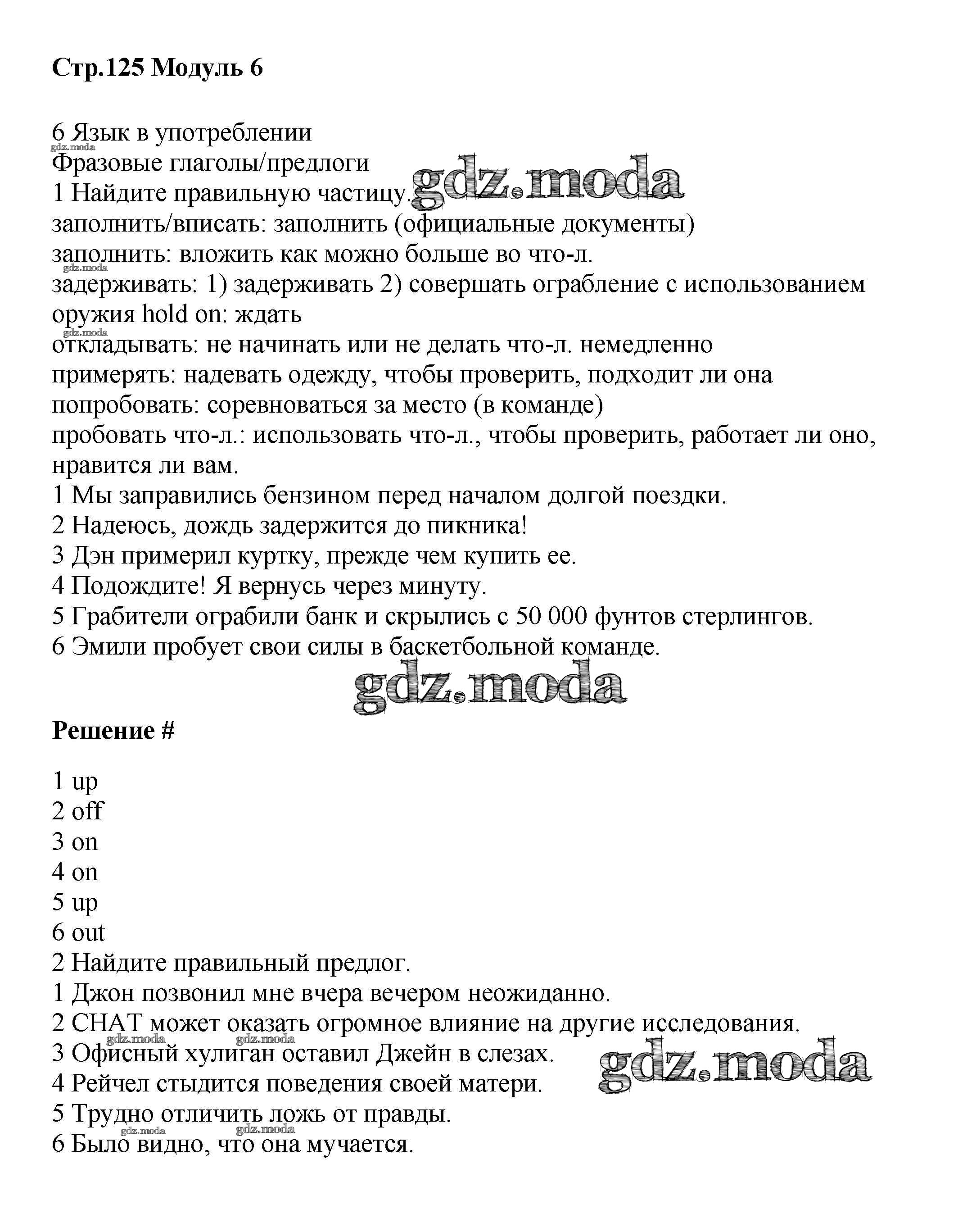 ГДЗ решение к заданию № стр.125 Английский язык 8 класс Starlight Баранова К.М. Просвещение 2016 Углубленный уровень ФГОС бесплатно на гдз.мода!