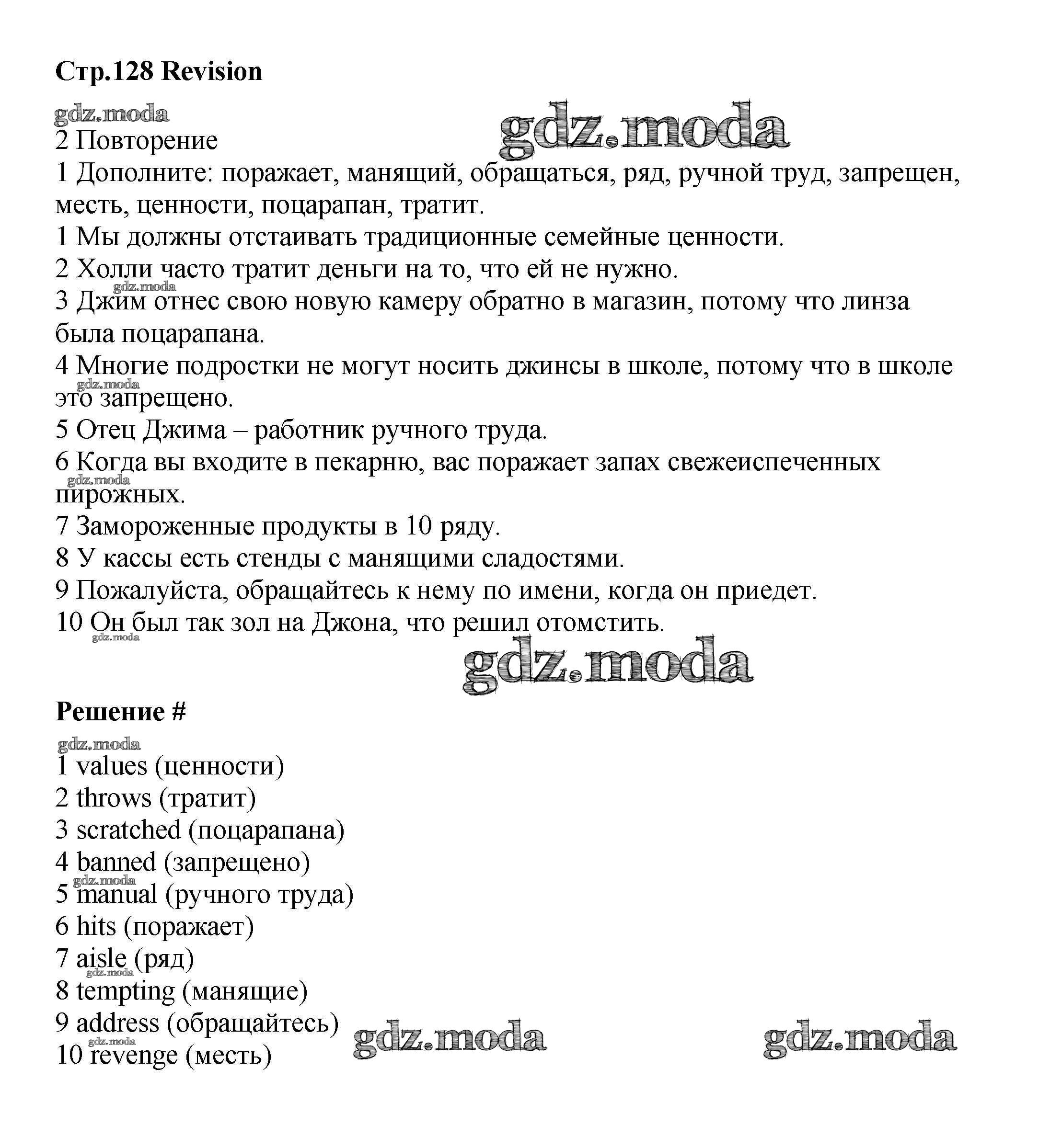 ГДЗ решение к заданию № стр.128 Английский язык 8 класс Starlight Баранова К.М. Просвещение 2016 Углубленный уровень ФГОС бесплатно на гдз.мода!