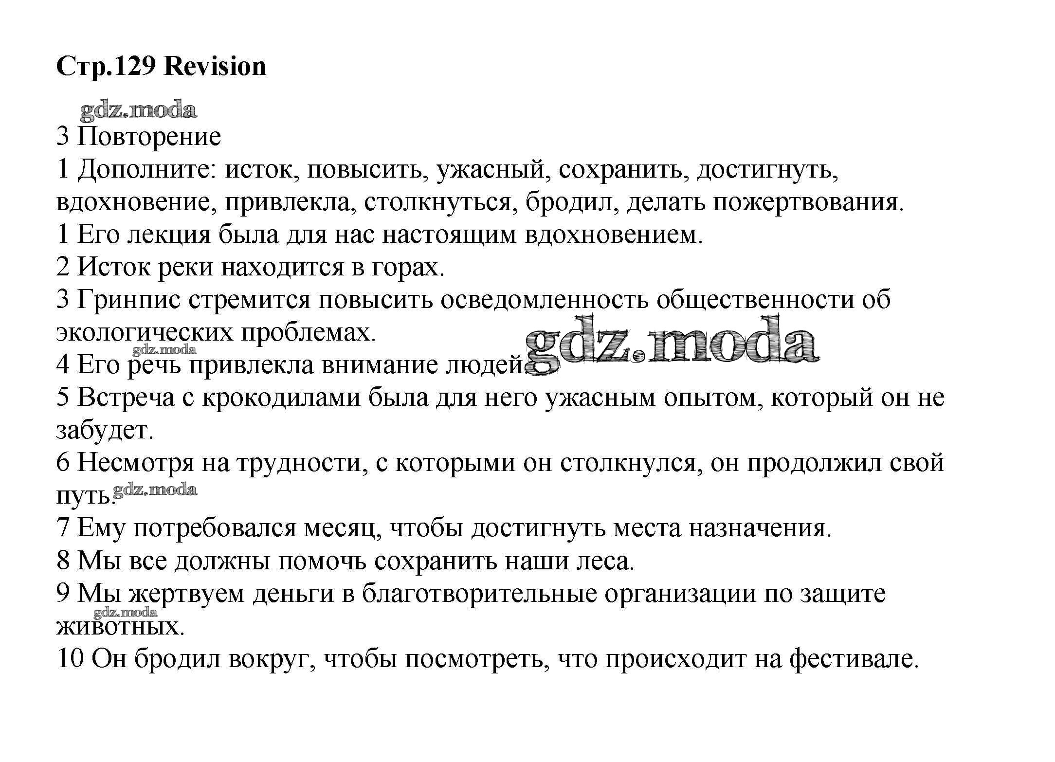 ГДЗ решение к заданию № стр.129 Английский язык 8 класс Starlight Баранова К.М. Просвещение 2016 Углубленный уровень ФГОС бесплатно на гдз.мода!
