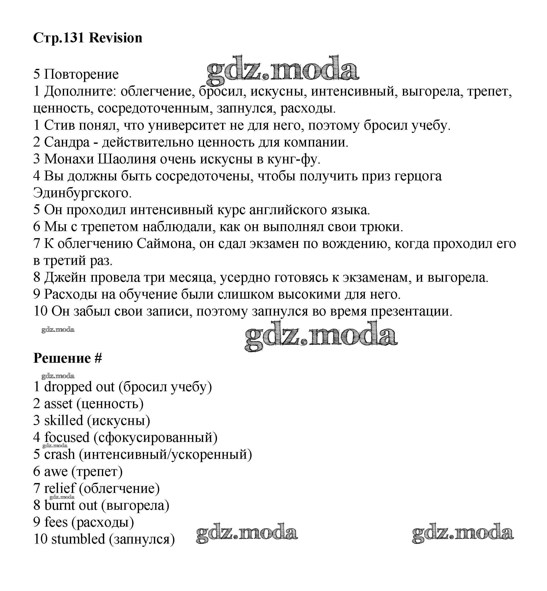 ГДЗ решение к заданию № стр.131 Английский язык 8 класс Starlight Баранова К.М. Просвещение 2016 Углубленный уровень ФГОС бесплатно на гдз.мода!
