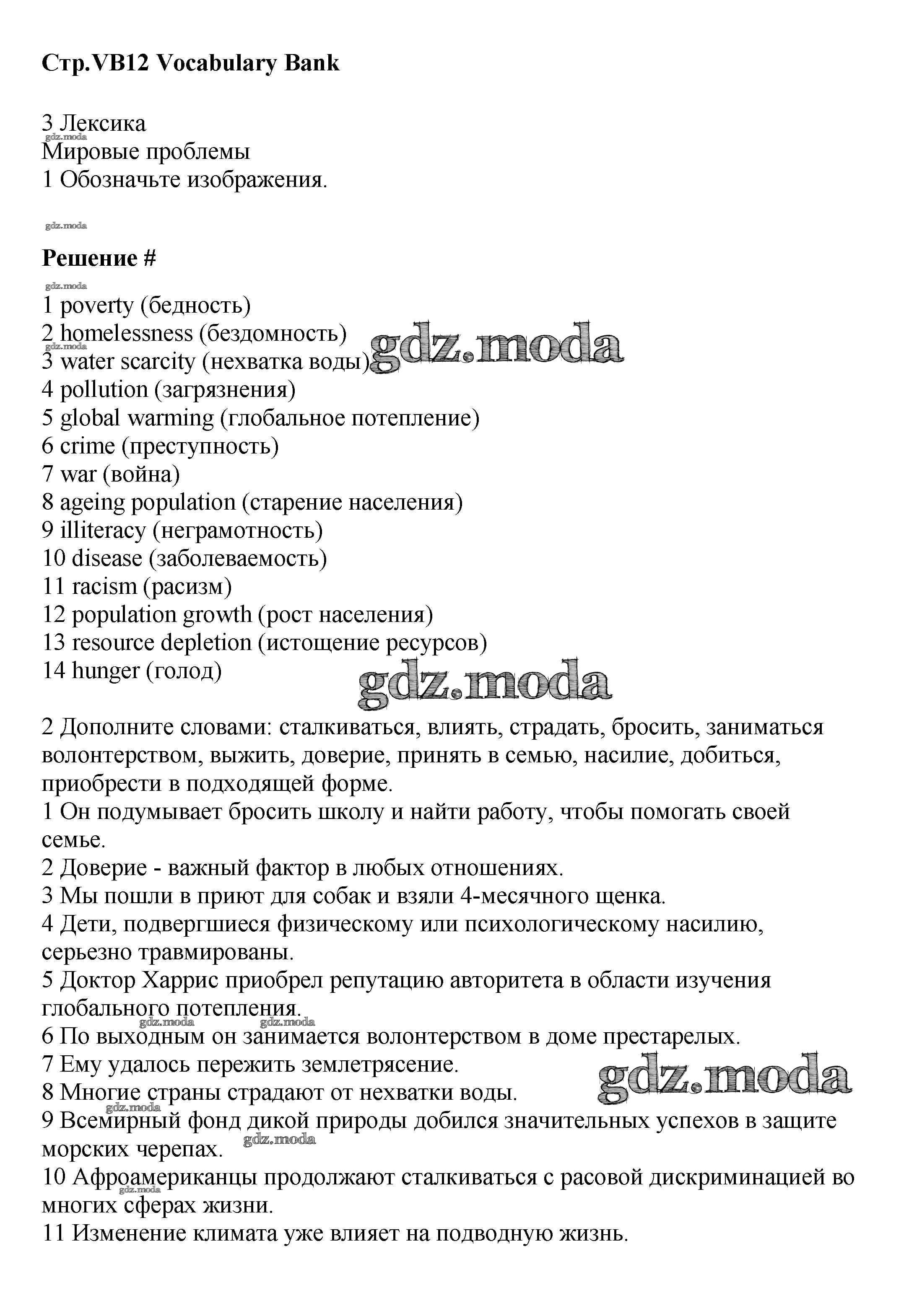 ГДЗ решение к заданию № VB12 Английский язык 8 класс Starlight Баранова К.М. Просвещение 2016 Углубленный уровень ФГОС бесплатно на гдз.мода!
