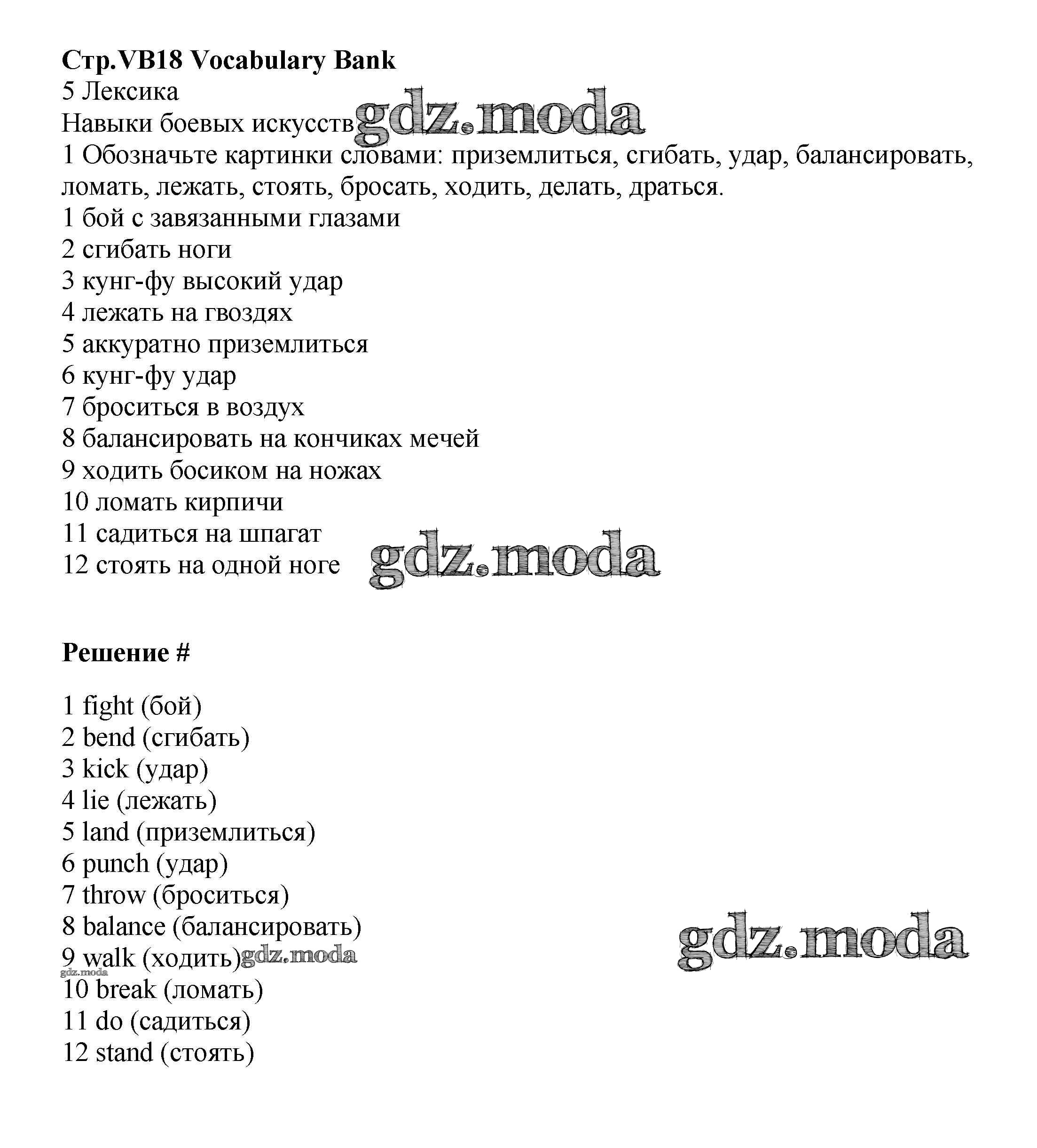 ГДЗ решение к заданию № VB18 Английский язык 8 класс Starlight Баранова К.М. Просвещение 2016 Углубленный уровень ФГОС бесплатно на гдз.мода!