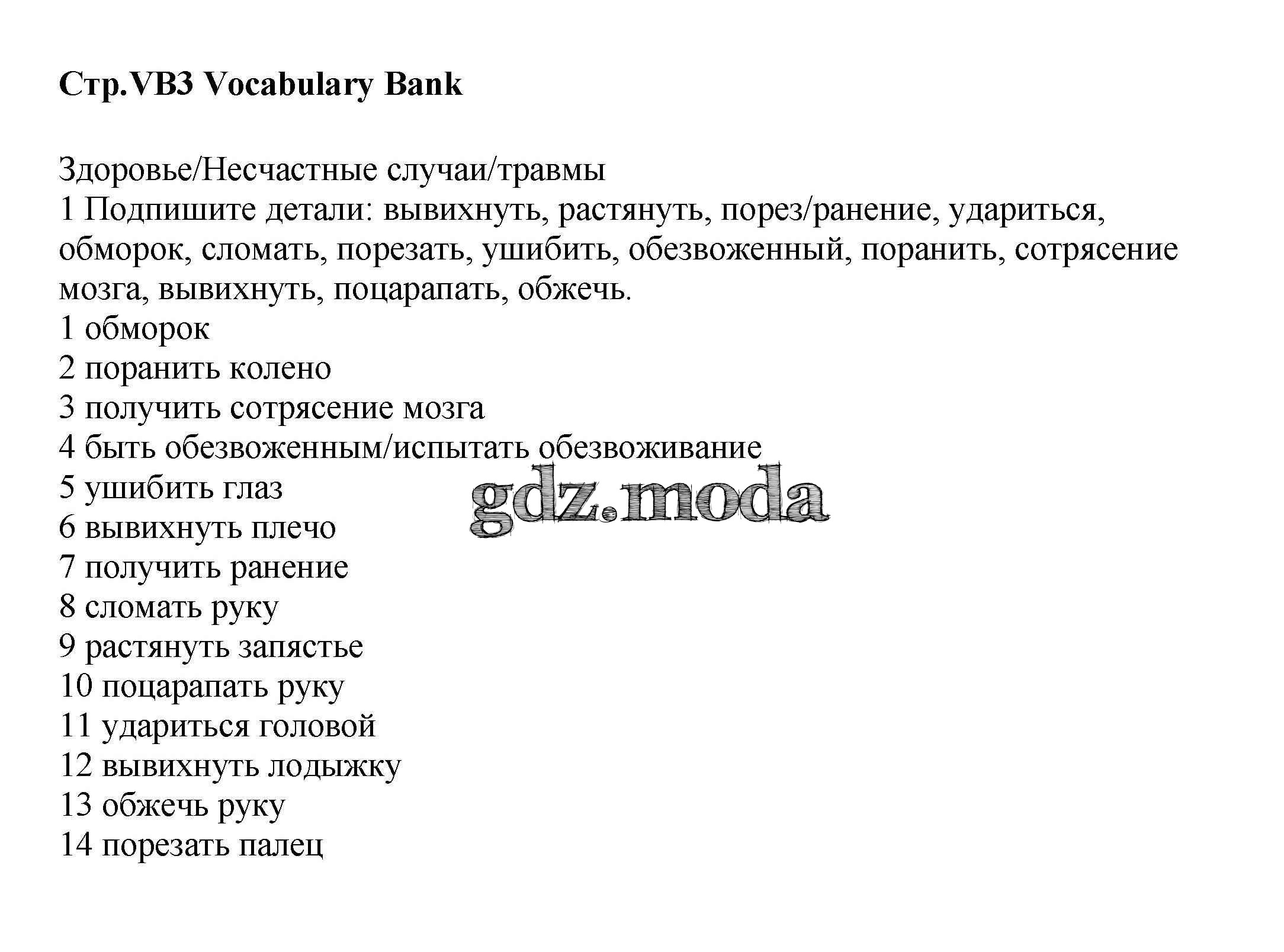 ГДЗ решение к заданию № VB3 Английский язык 8 класс Starlight Баранова К.М. Просвещение 2016 Углубленный уровень ФГОС бесплатно на гдз.мода!