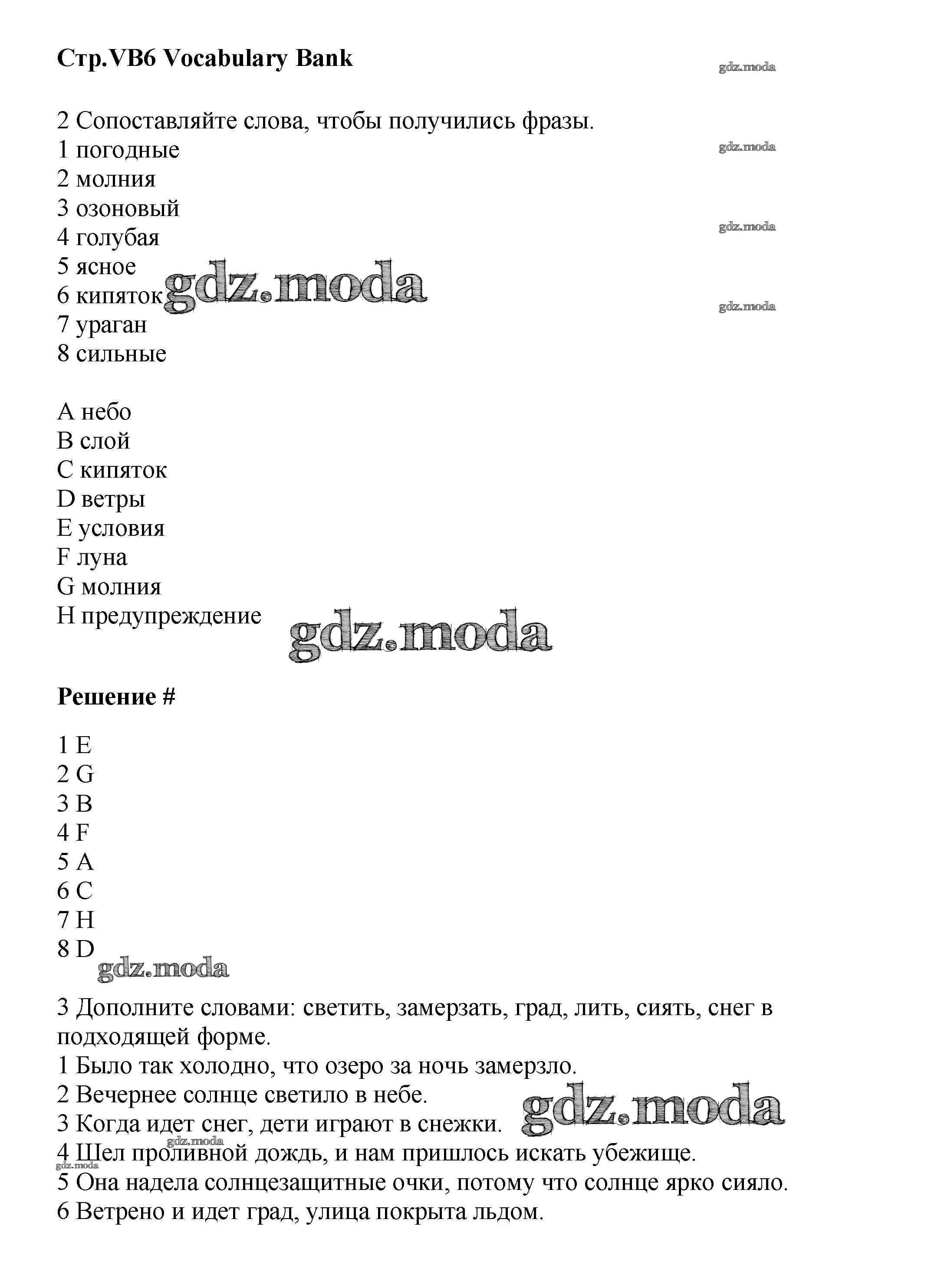 ГДЗ решение к заданию № VB6 Английский язык 8 класс Starlight Баранова К.М. Просвещение 2016 Углубленный уровень ФГОС бесплатно на гдз.мода!
