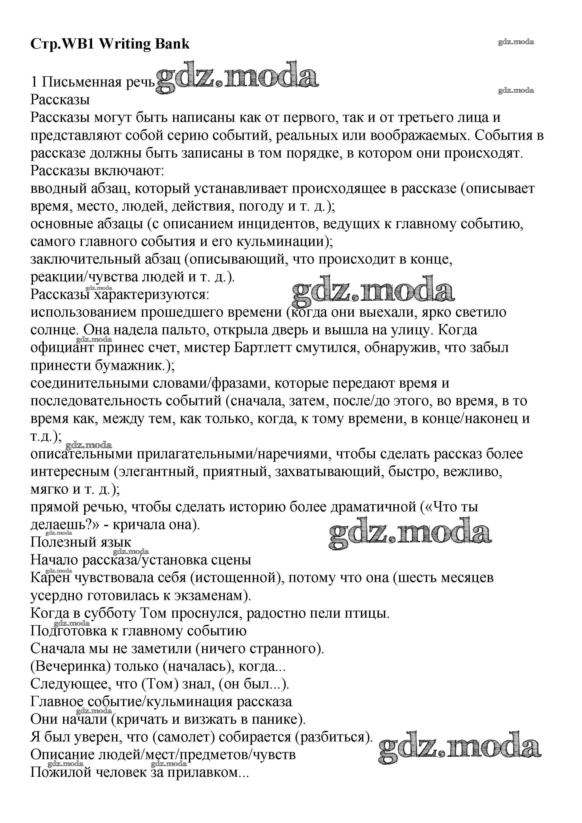 ГДЗ решение к заданию № WB1 Английский язык 8 класс Starlight Баранова К.М. Просвещение 2016 Углубленный уровень ФГОС бесплатно на гдз.мода!