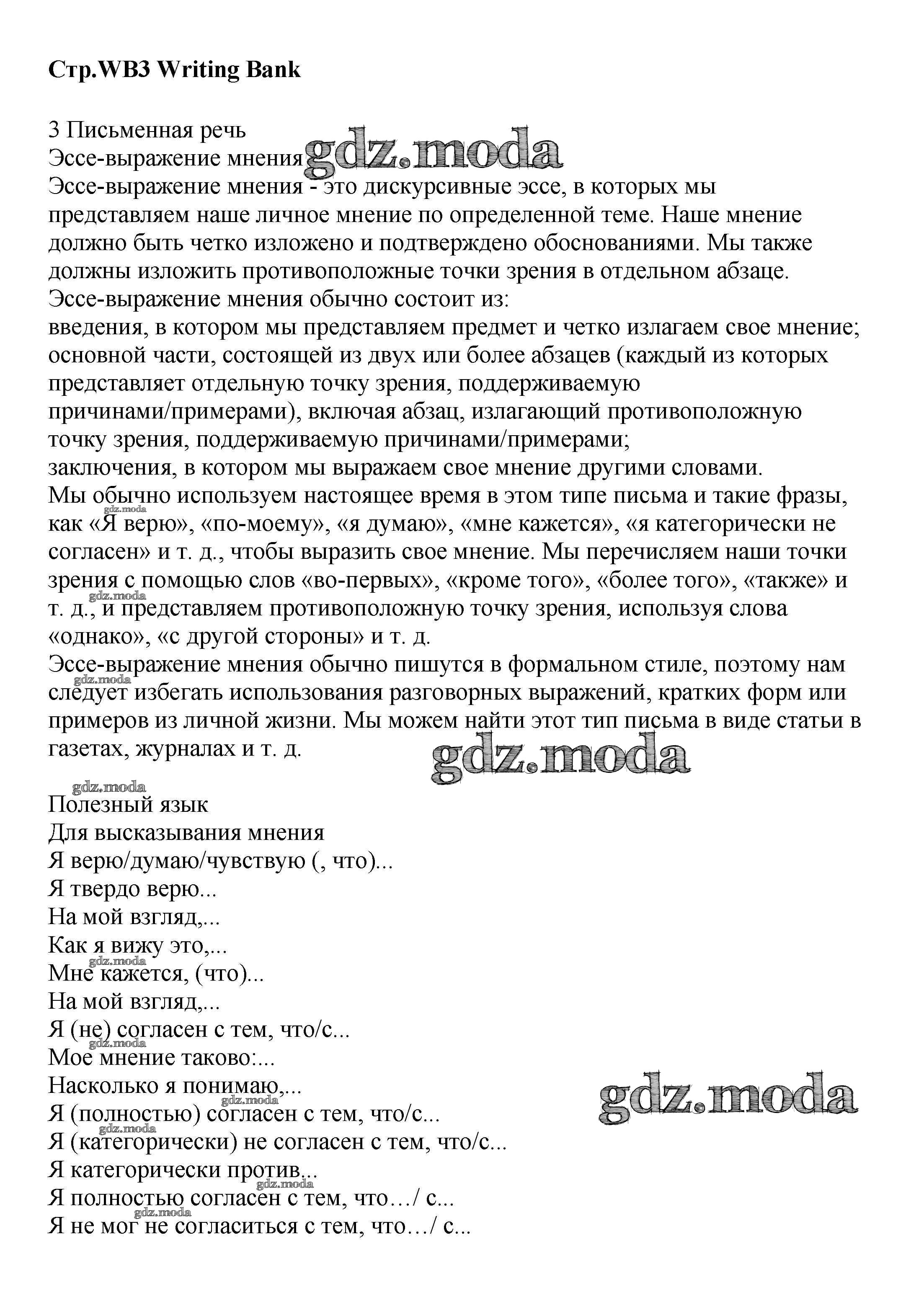 ГДЗ решение к заданию № WB3 Английский язык 8 класс Starlight Баранова К.М. Просвещение 2016 Углубленный уровень ФГОС бесплатно на гдз.мода!