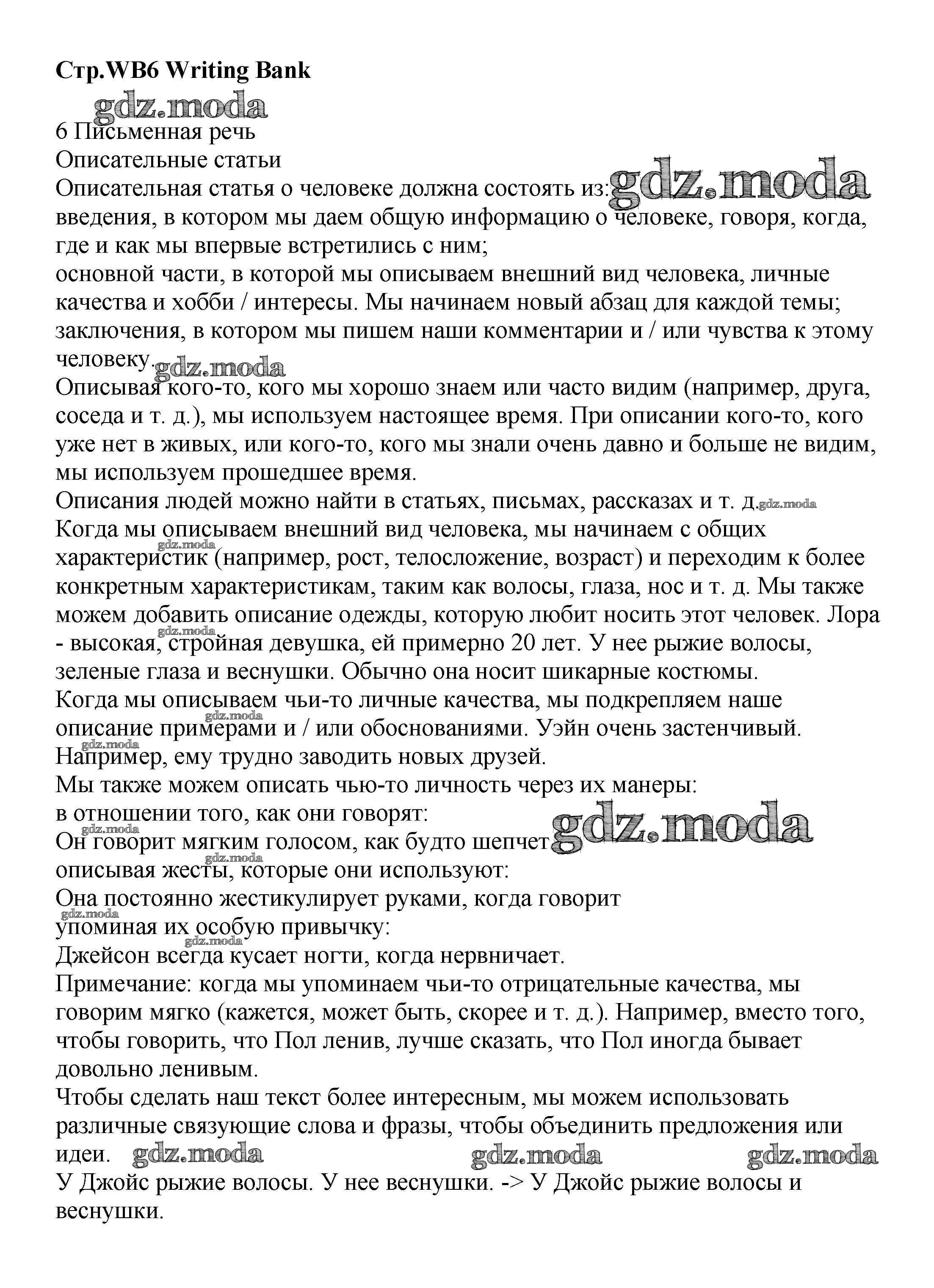 ГДЗ решение к заданию № WB6 Английский язык 8 класс Starlight Баранова К.М. Просвещение 2016 Углубленный уровень ФГОС бесплатно на гдз.мода!