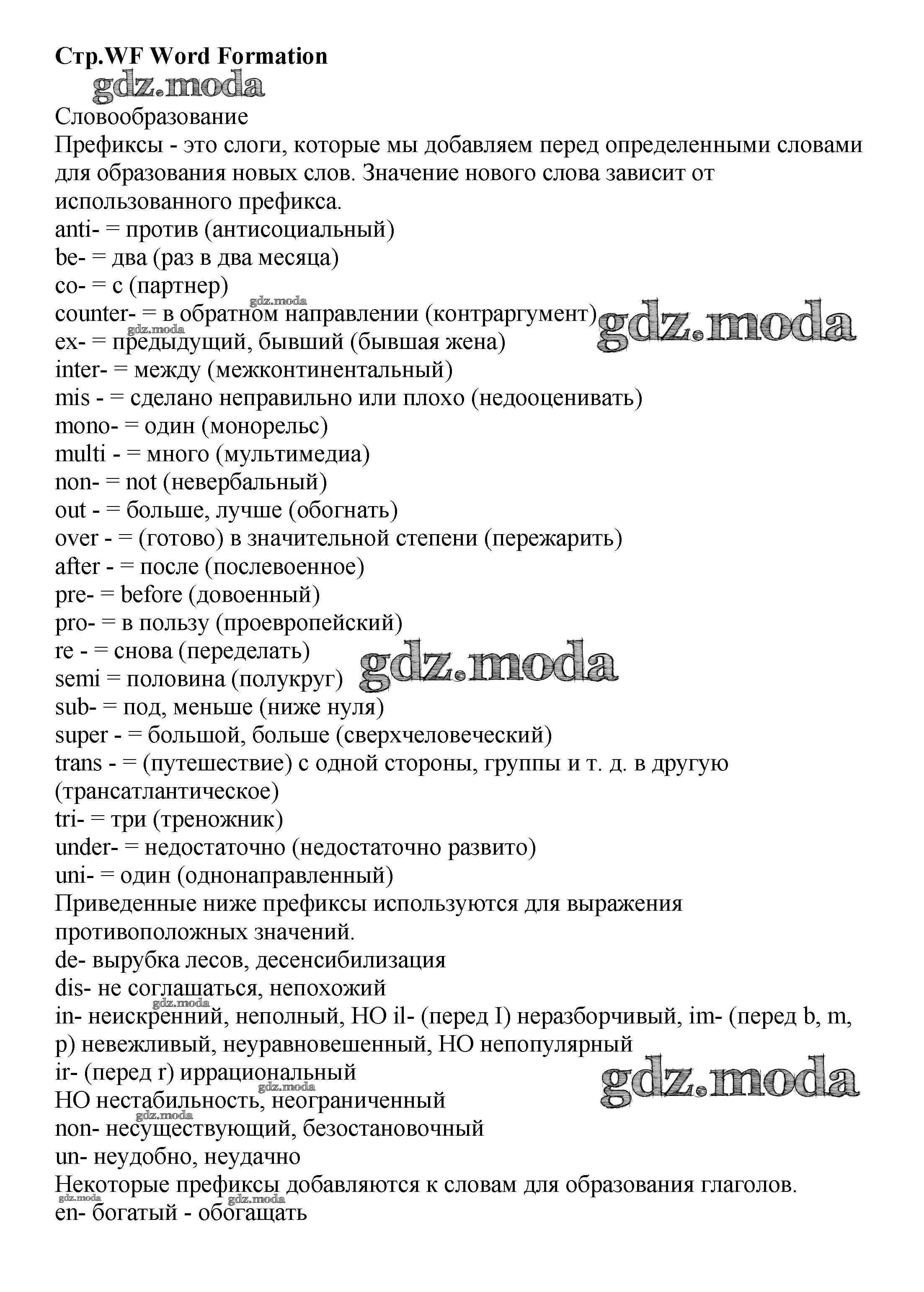 ГДЗ решение к заданию № WF1-WF3 Английский язык 8 класс Starlight Баранова К.М. Просвещение 2016 Углубленный уровень ФГОС бесплатно на гдз.мода!