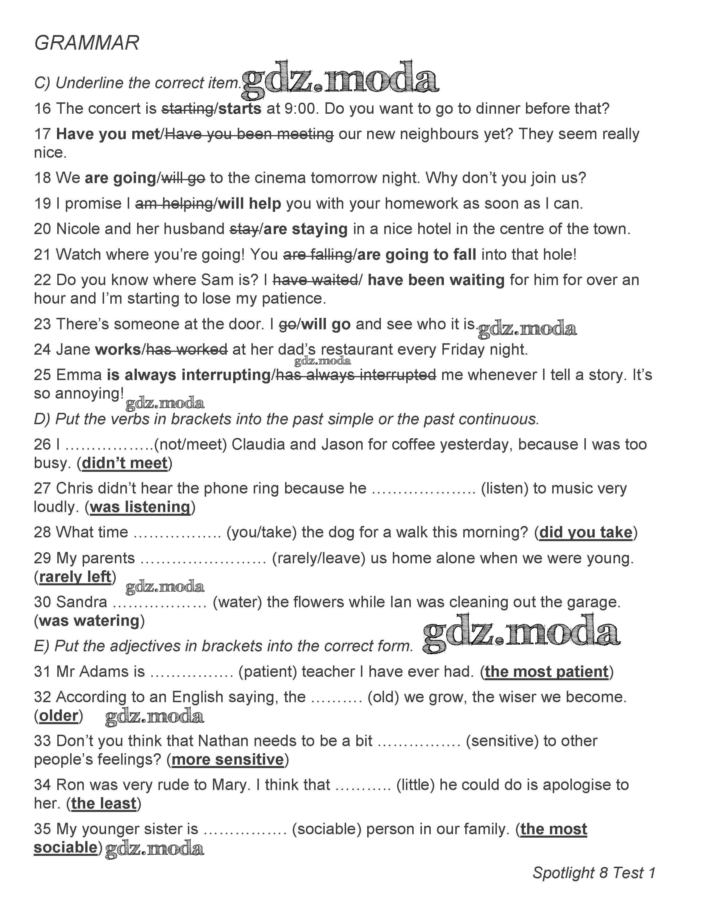 ОТВЕТ на задание № C, D Контрольные задания по Английскому языку 8 класс Ваулина Spotlight