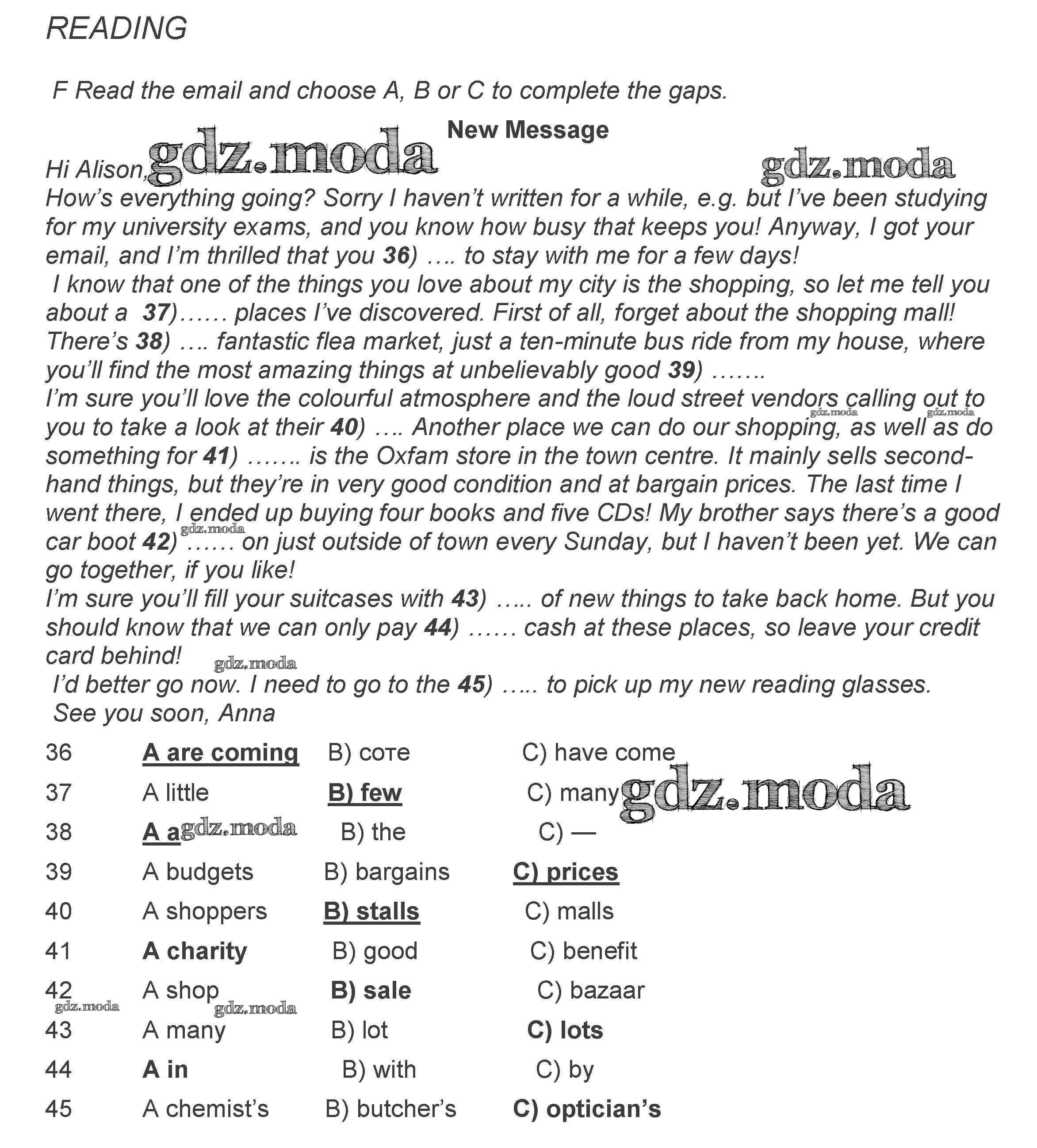 ГДЗ решение к заданию № F Английский язык 8 класс контрольные задания Ваулина Spotlight Просвещение 2018 ФГОС бесплатно на гдз.мода!