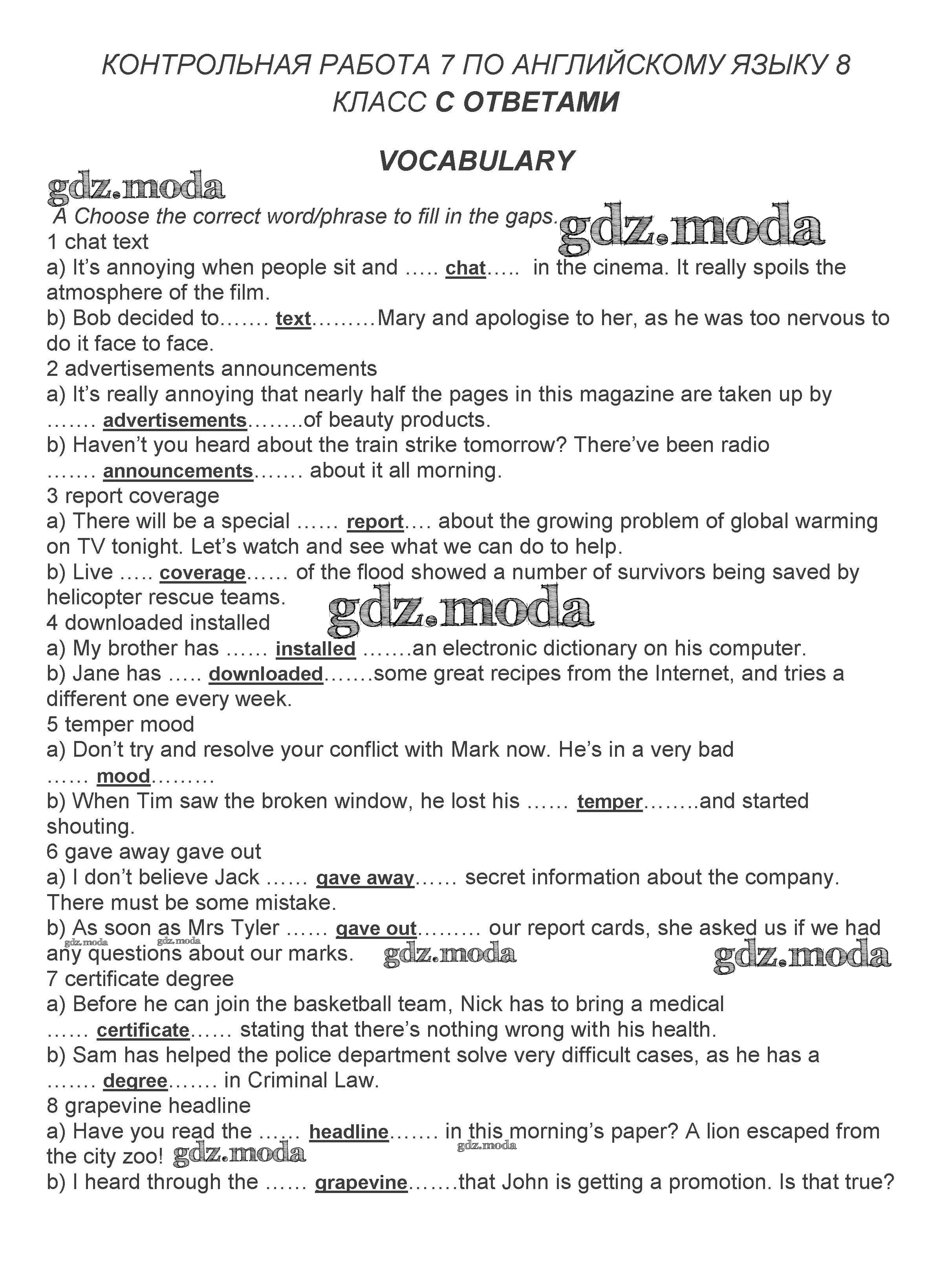 ГДЗ решение к заданию № A, B Английский язык 8 класс контрольные задания Ваулина Spotlight Просвещение 2018 ФГОС бесплатно на гдз.мода!