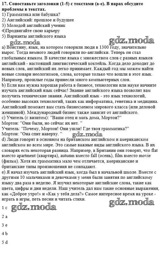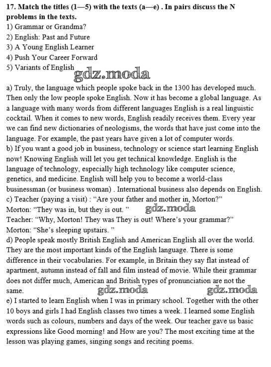 ГДЗ решение к заданию № 17 Английский язык 8 класс рабочая тетрадь Михеева И.В. Дрофа 2017 Часть 1, Часть 2 ФГОС бесплатно на гдз.мода!
