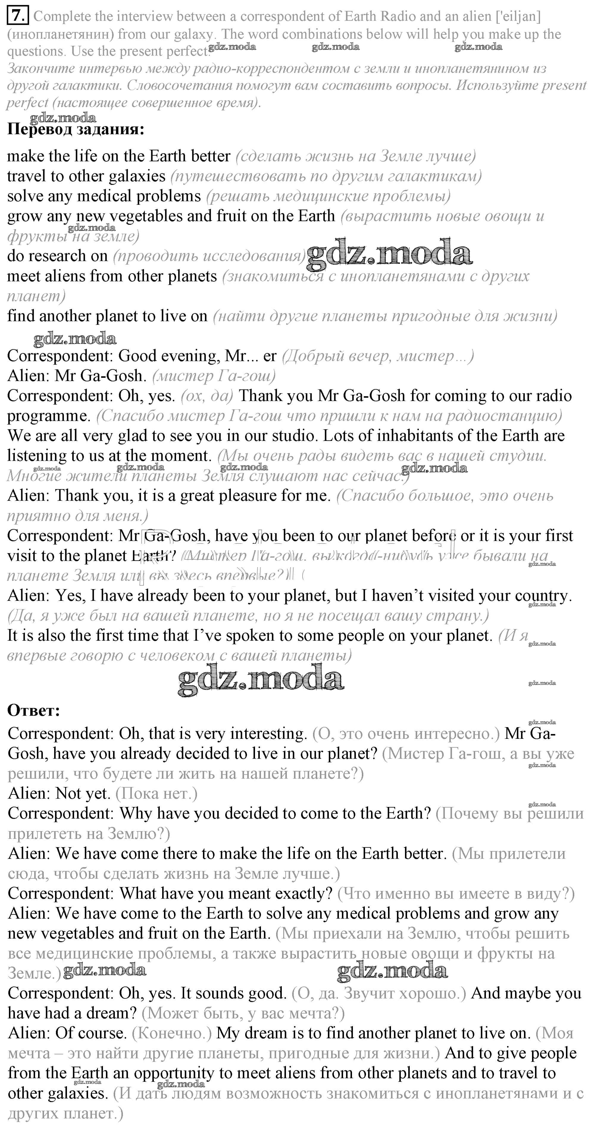 ОТВЕТ на задание № 7 Рабочая тетрадь по Английскому языку 8 класс Биболетова Enjoy English