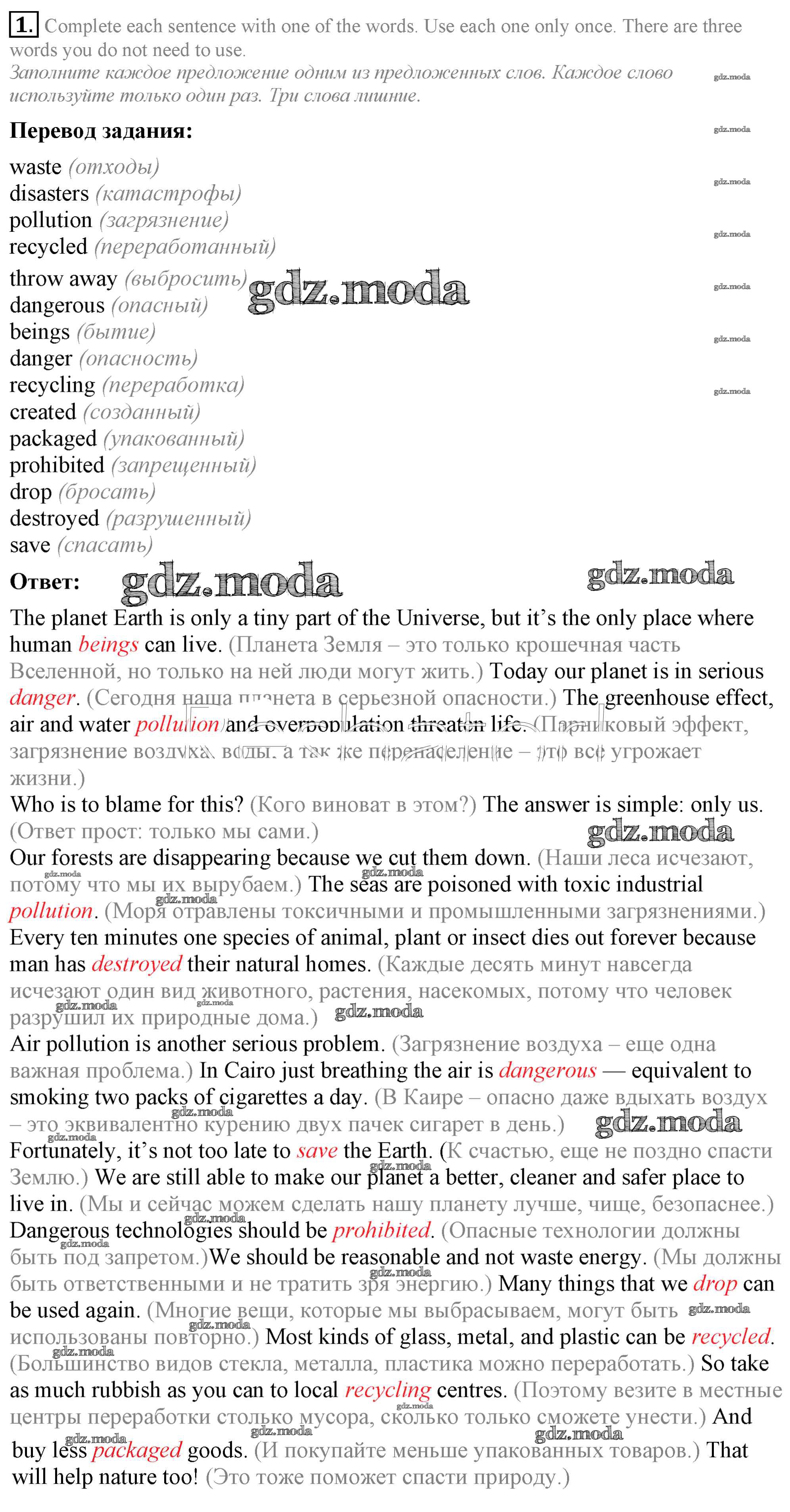 ОТВЕТ на задание № 1 Рабочая тетрадь по Английскому языку 8 класс Биболетова Enjoy English