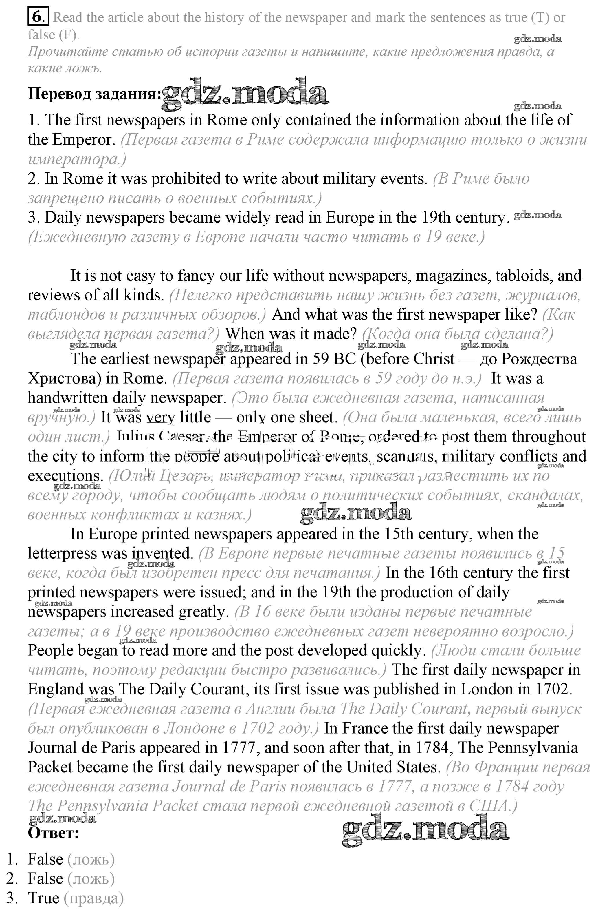 ОТВЕТ на задание № 6 Рабочая тетрадь по Английскому языку 8 класс Биболетова Enjoy English