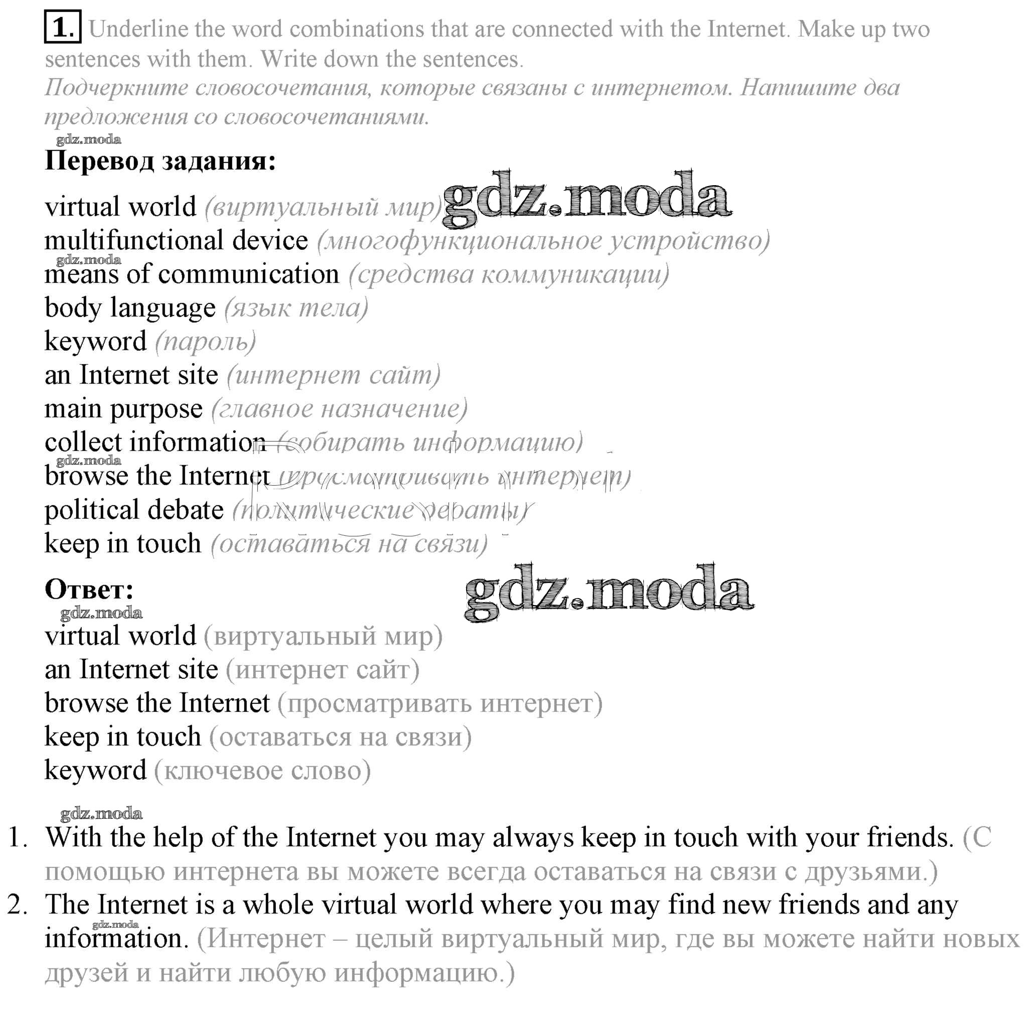 ОТВЕТ на задание № 1 Рабочая тетрадь по Английскому языку 8 класс Биболетова Enjoy English