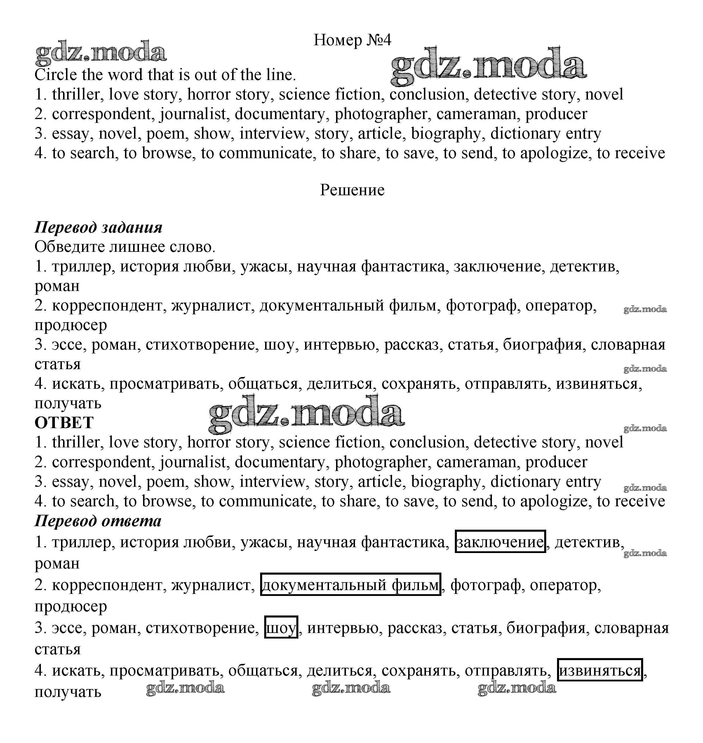 ОТВЕТ на задание № 4 Рабочая тетрадь по Английскому языку 8 класс Биболетова Enjoy English