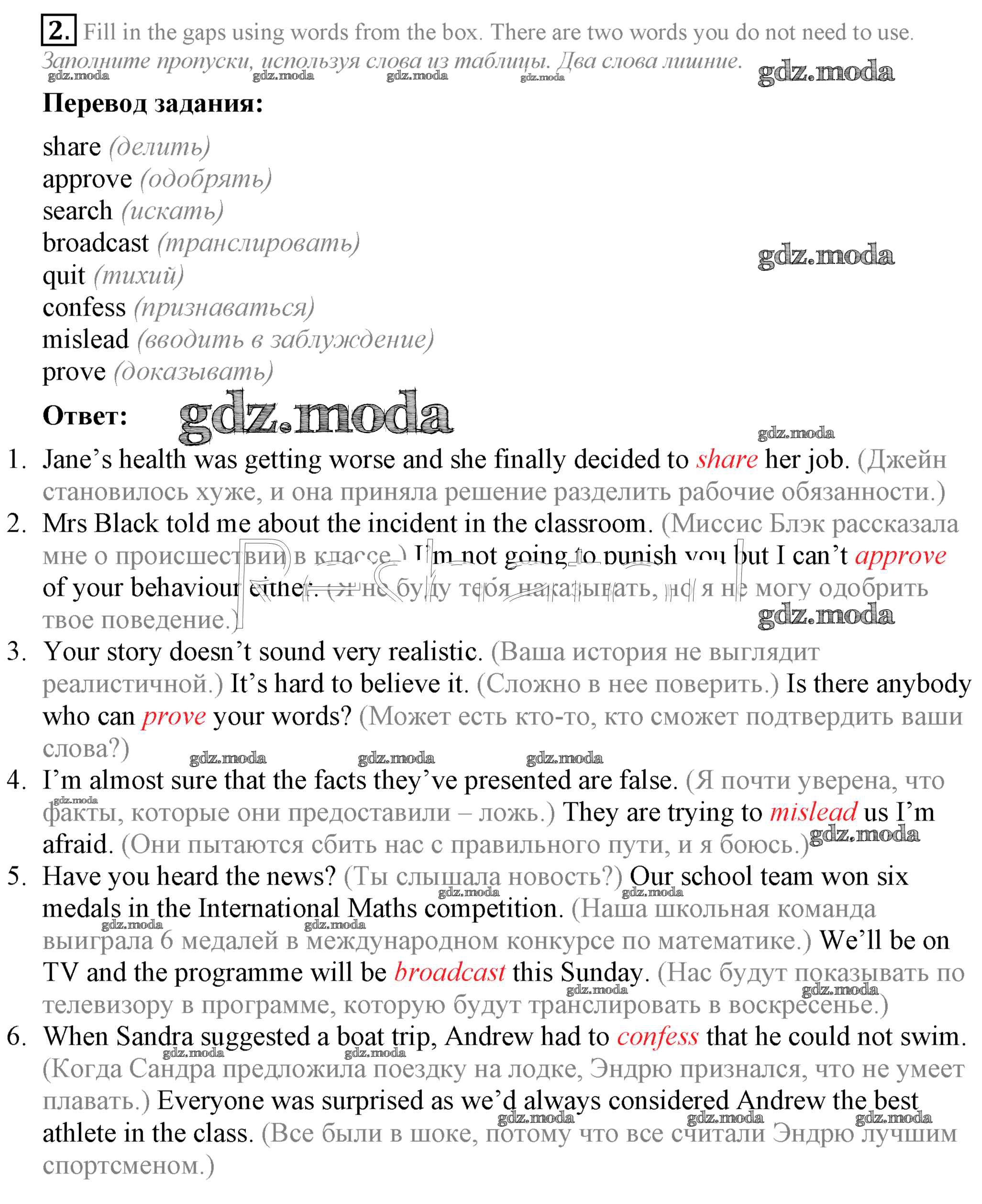 ОТВЕТ на задание № 2 Рабочая тетрадь по Английскому языку 8 класс Биболетова Enjoy English