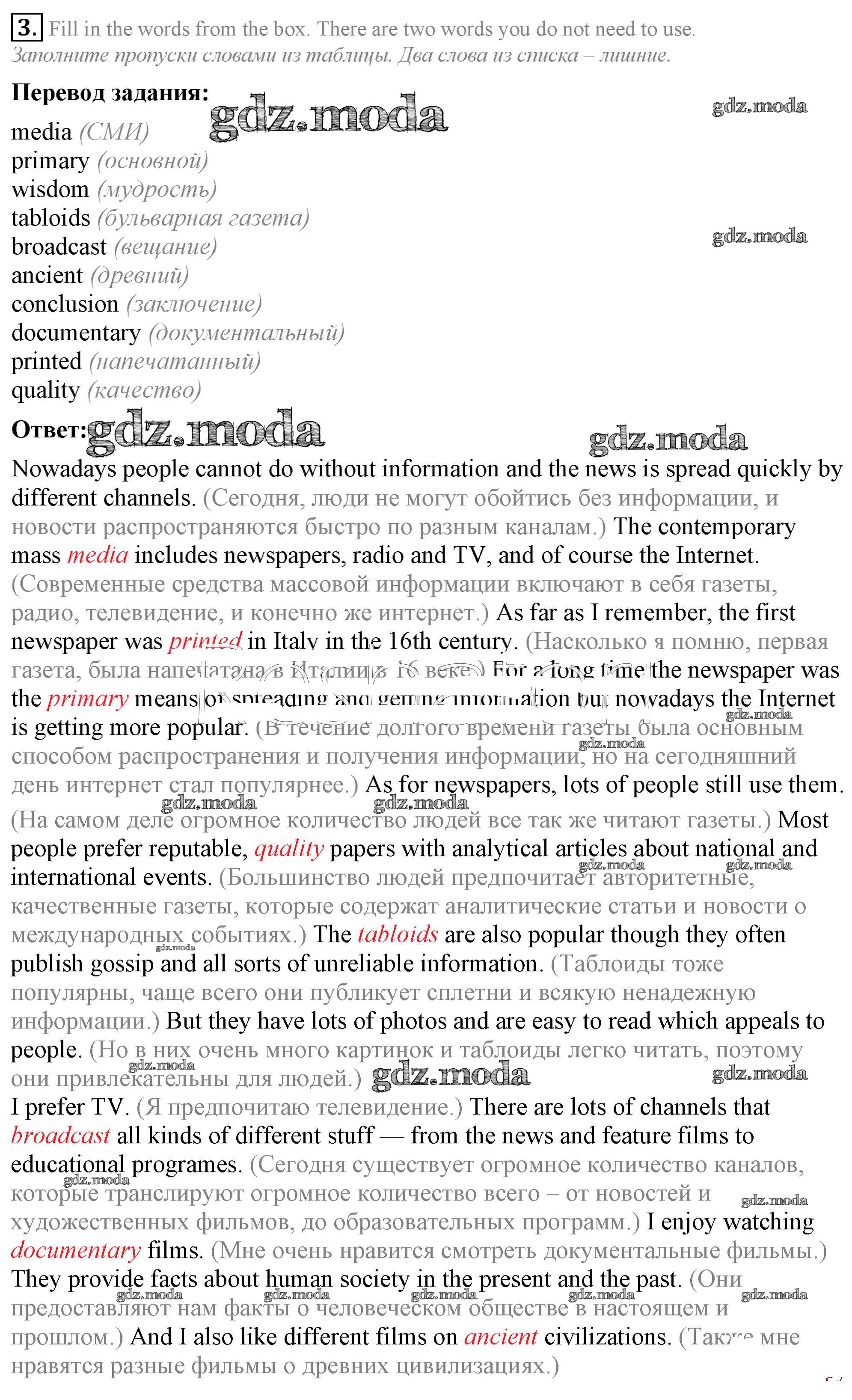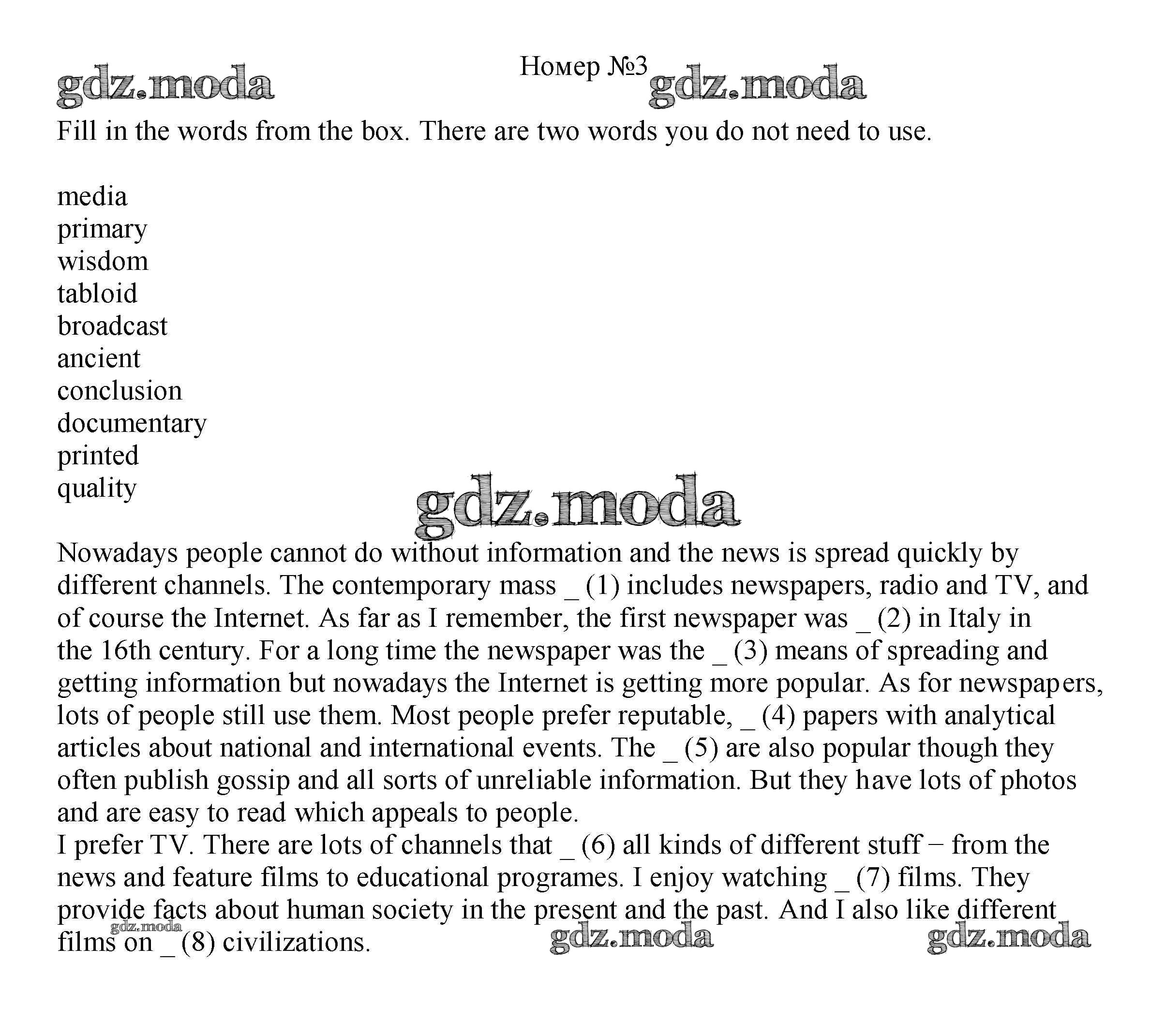 ОТВЕТ на задание № 3 Рабочая тетрадь по Английскому языку 8 класс Биболетова Enjoy English