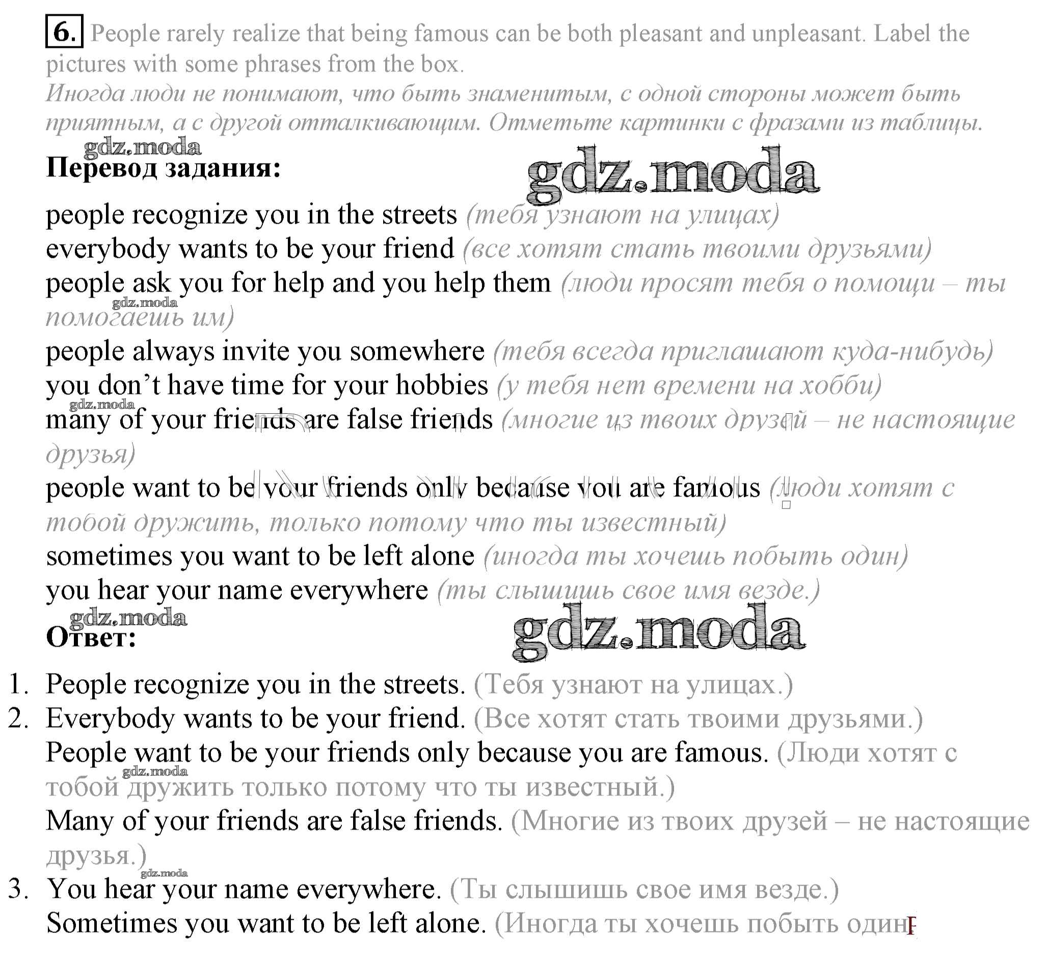 ОТВЕТ на задание № 6 Рабочая тетрадь по Английскому языку 8 класс Биболетова Enjoy English