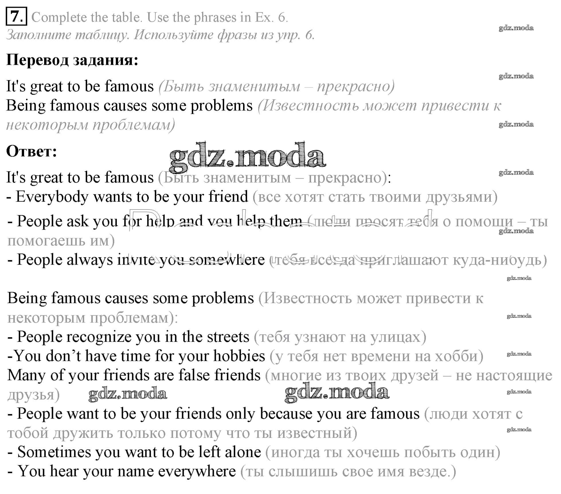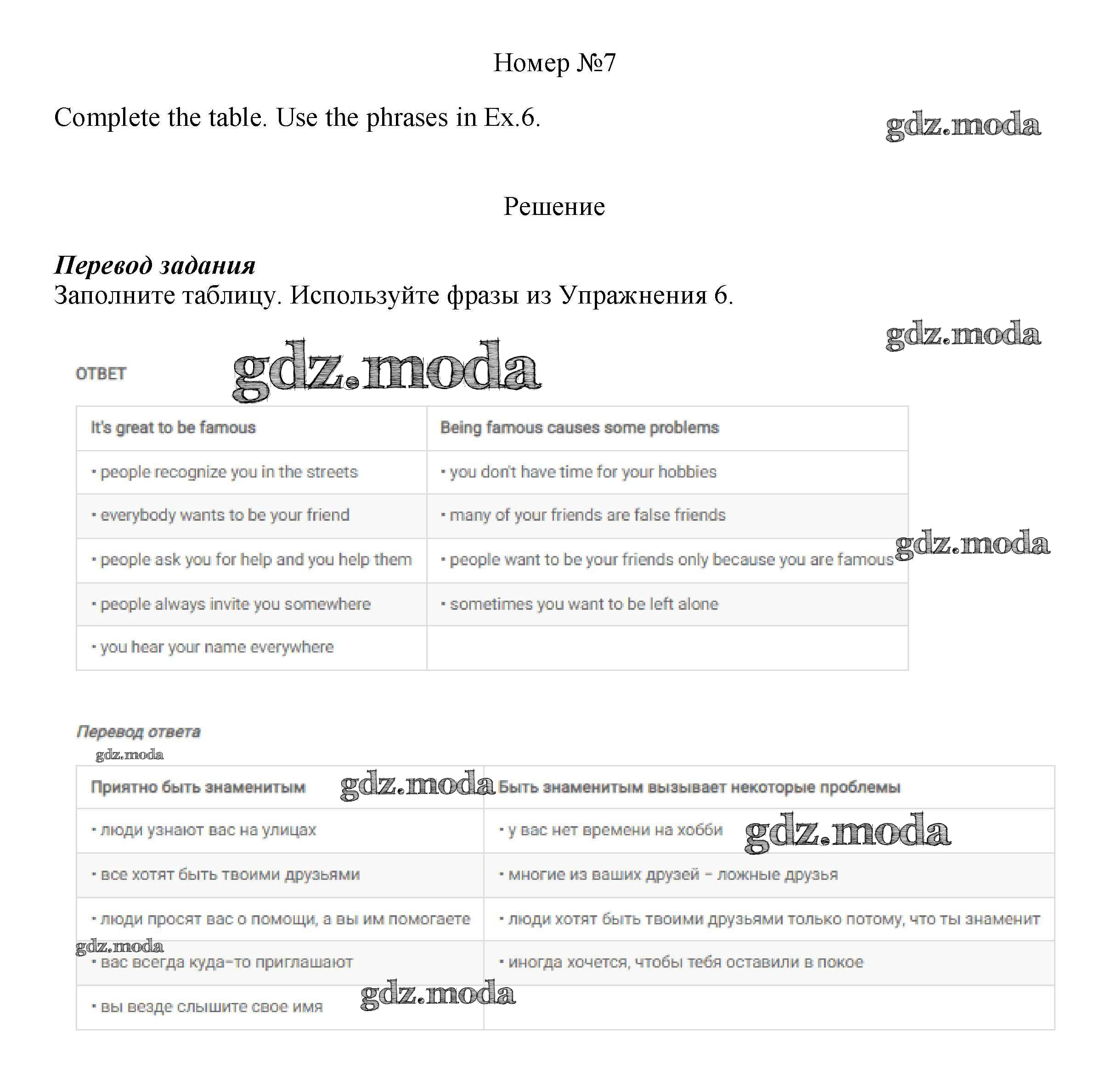 ОТВЕТ на задание № 7 Рабочая тетрадь по Английскому языку 8 класс Биболетова Enjoy English