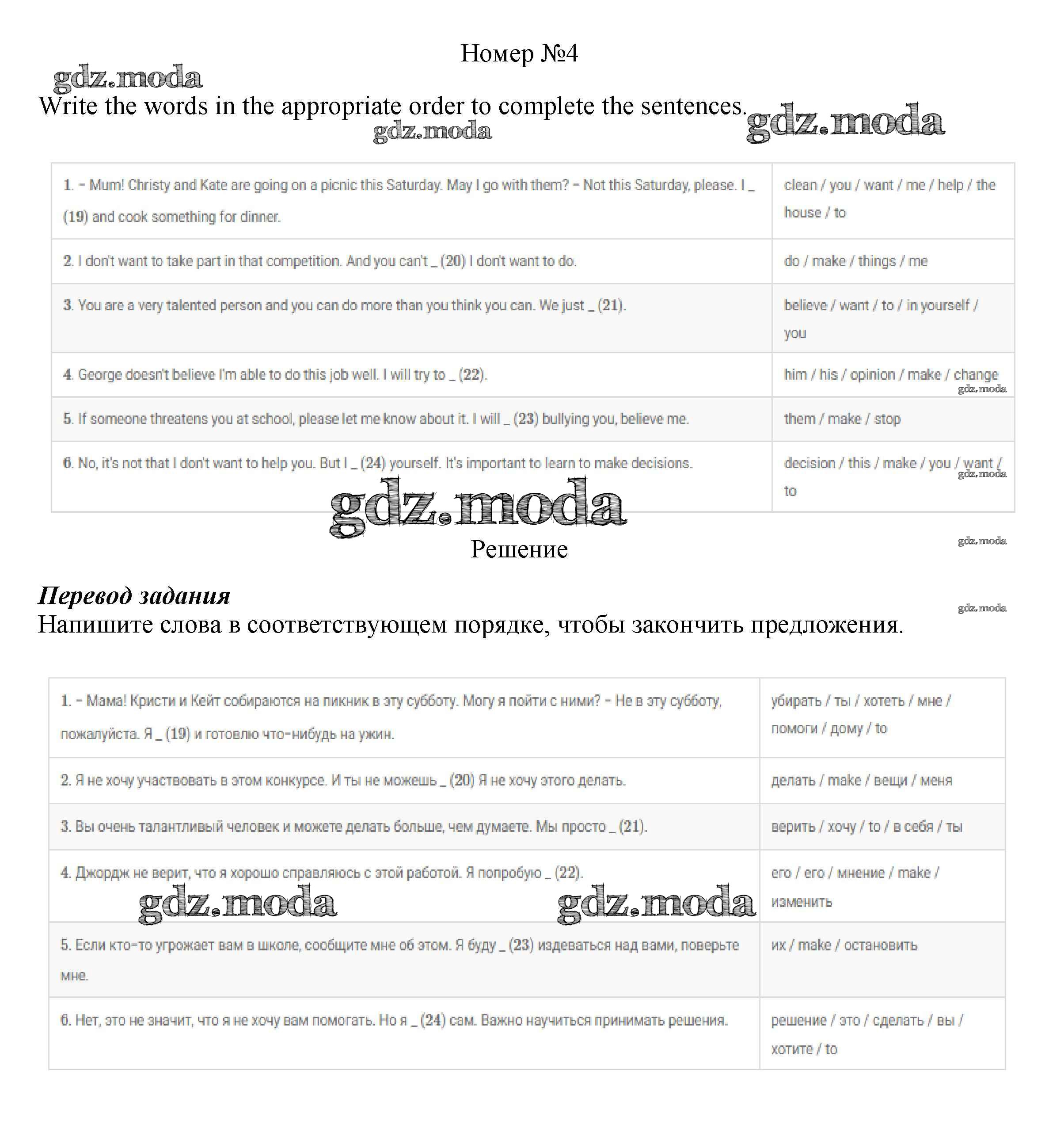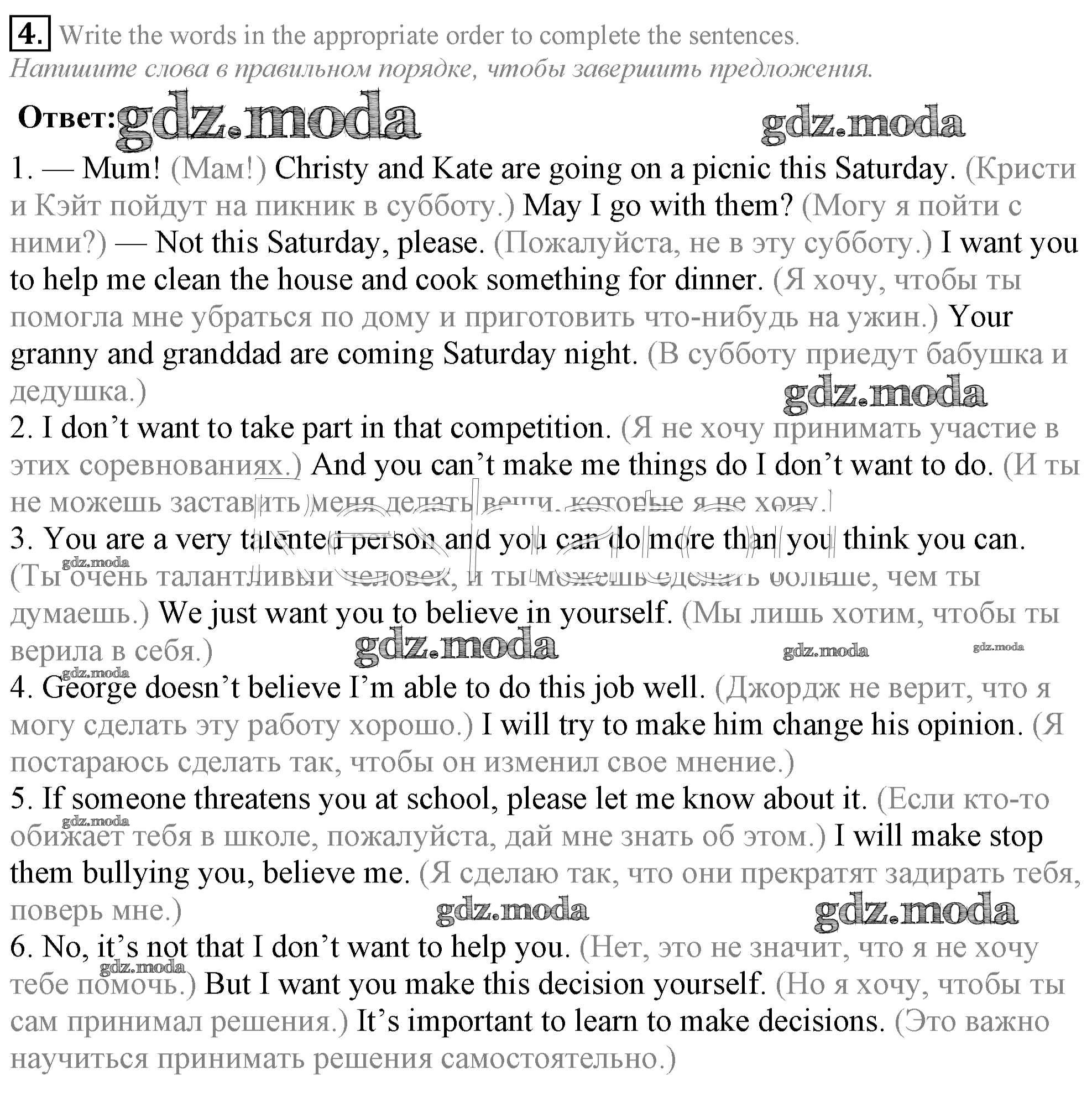 ОТВЕТ на задание № 4 Рабочая тетрадь по Английскому языку 8 класс Биболетова Enjoy English