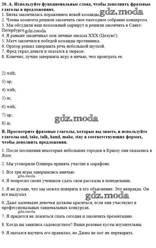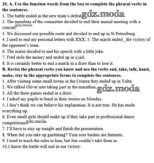 ГДЗ решение к заданию № 20 Английский язык 8 класс рабочая тетрадь Rainbow English Афанасьева О.В. Дрофа 2016 ФГОС бесплатно на гдз.мода!