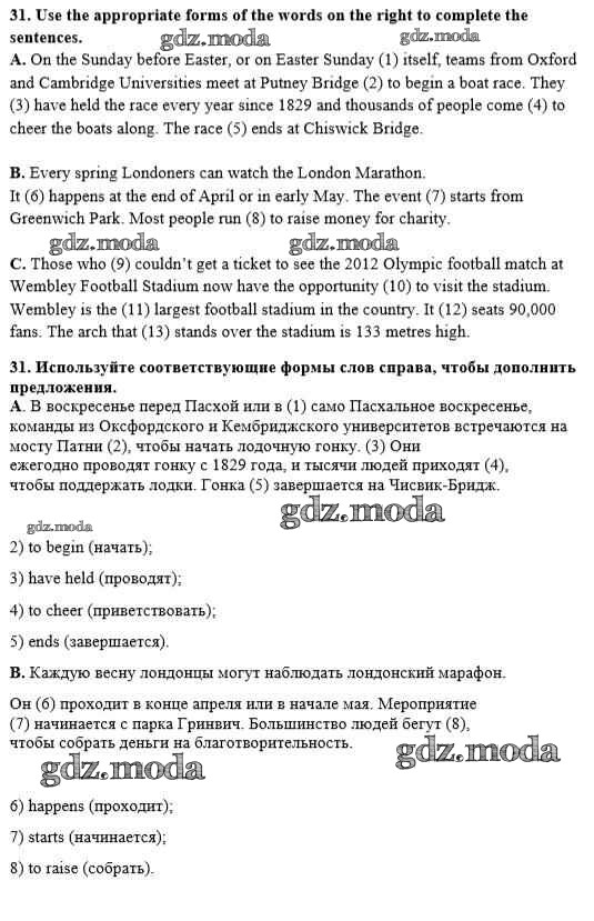 ГДЗ решение к заданию № 31 Английский язык 8 класс рабочая тетрадь Rainbow English Афанасьева О.В. Дрофа 2016 ФГОС бесплатно на гдз.мода!