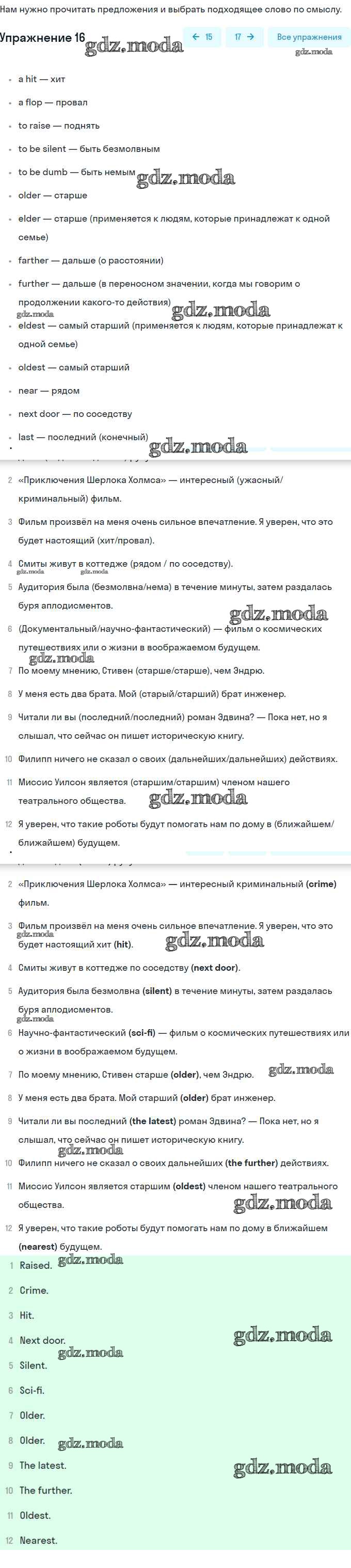 ГДЗ решение к заданию № 16 Английский язык 8 класс рабочая тетрадь Rainbow English Афанасьева О.В. Дрофа 2016 ФГОС бесплатно на гдз.мода!
