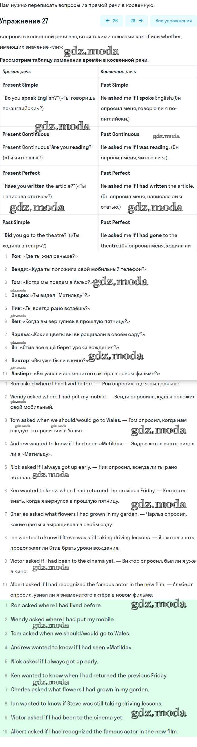 ГДЗ решение к заданию № 27 Английский язык 8 класс рабочая тетрадь Rainbow English Афанасьева О.В. Дрофа 2016 ФГОС бесплатно на гдз.мода!