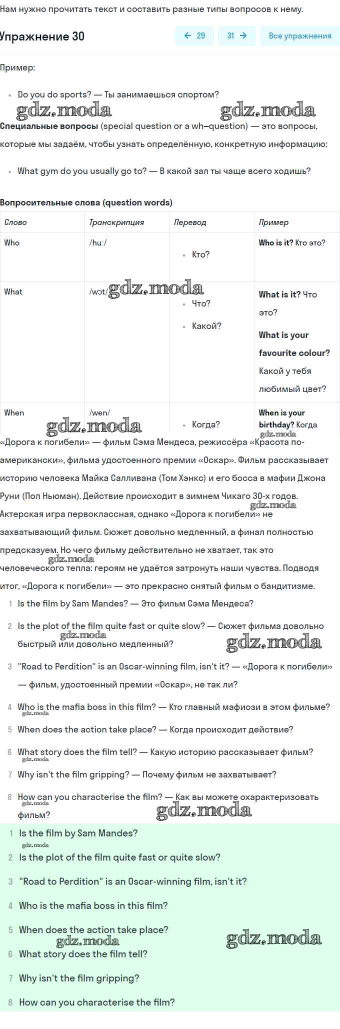 ГДЗ решение к заданию № 30 Английский язык 8 класс рабочая тетрадь Rainbow English Афанасьева О.В. Дрофа 2016 ФГОС бесплатно на гдз.мода!