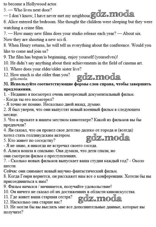 ГДЗ решение к заданию № 31 Английский язык 8 класс рабочая тетрадь Rainbow English Афанасьева О.В. Дрофа 2016 ФГОС бесплатно на гдз.мода!