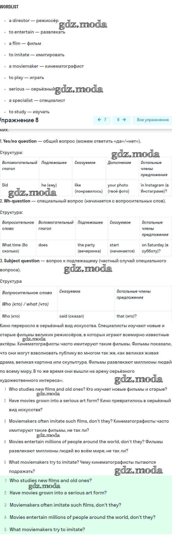ГДЗ решение к заданию № 8 Английский язык 8 класс рабочая тетрадь Rainbow English Афанасьева О.В. Дрофа 2016 ФГОС бесплатно на гдз.мода!