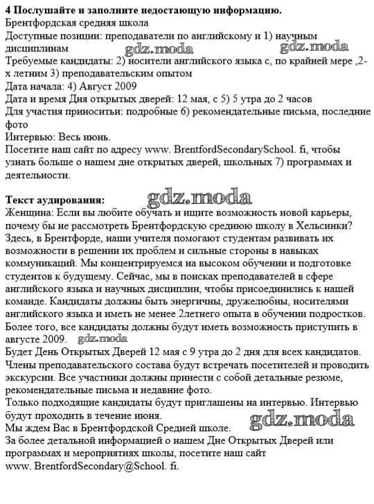 ОТВЕТ на задание № 4 Рабочая тетрадь по Английскому языку 8 класс Ваулина Spotlight