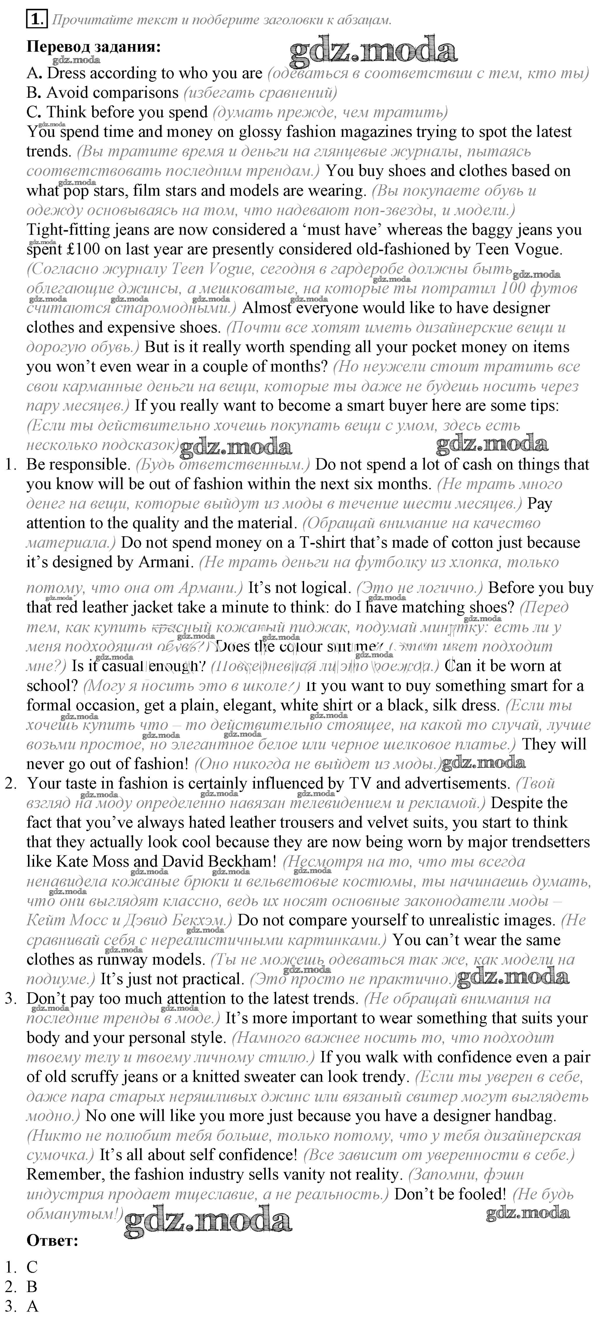 ОТВЕТ на задание № 1 Рабочая тетрадь по Английскому языку 8 класс Ваулина Spotlight