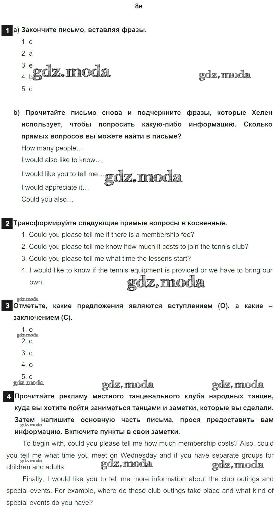 ОТВЕТ на задание № 8e Рабочая тетрадь по Английскому языку 8 класс Ваулина Spotlight