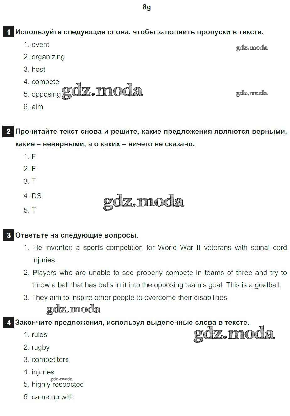 ОТВЕТ на задание № 8g Рабочая тетрадь по Английскому языку 8 класс Ваулина Spotlight