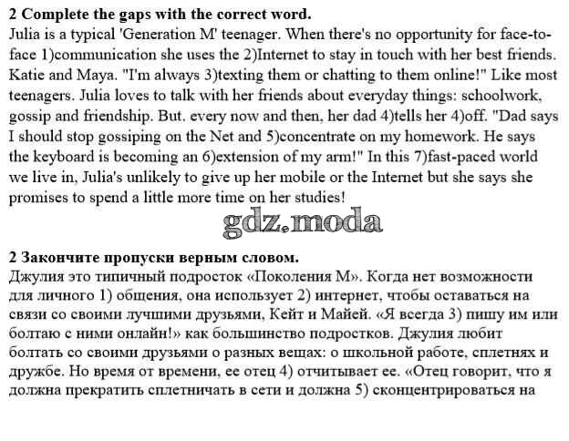ОТВЕТ на задание № 2 Рабочая тетрадь по Английскому языку 8 класс Ваулина Spotlight