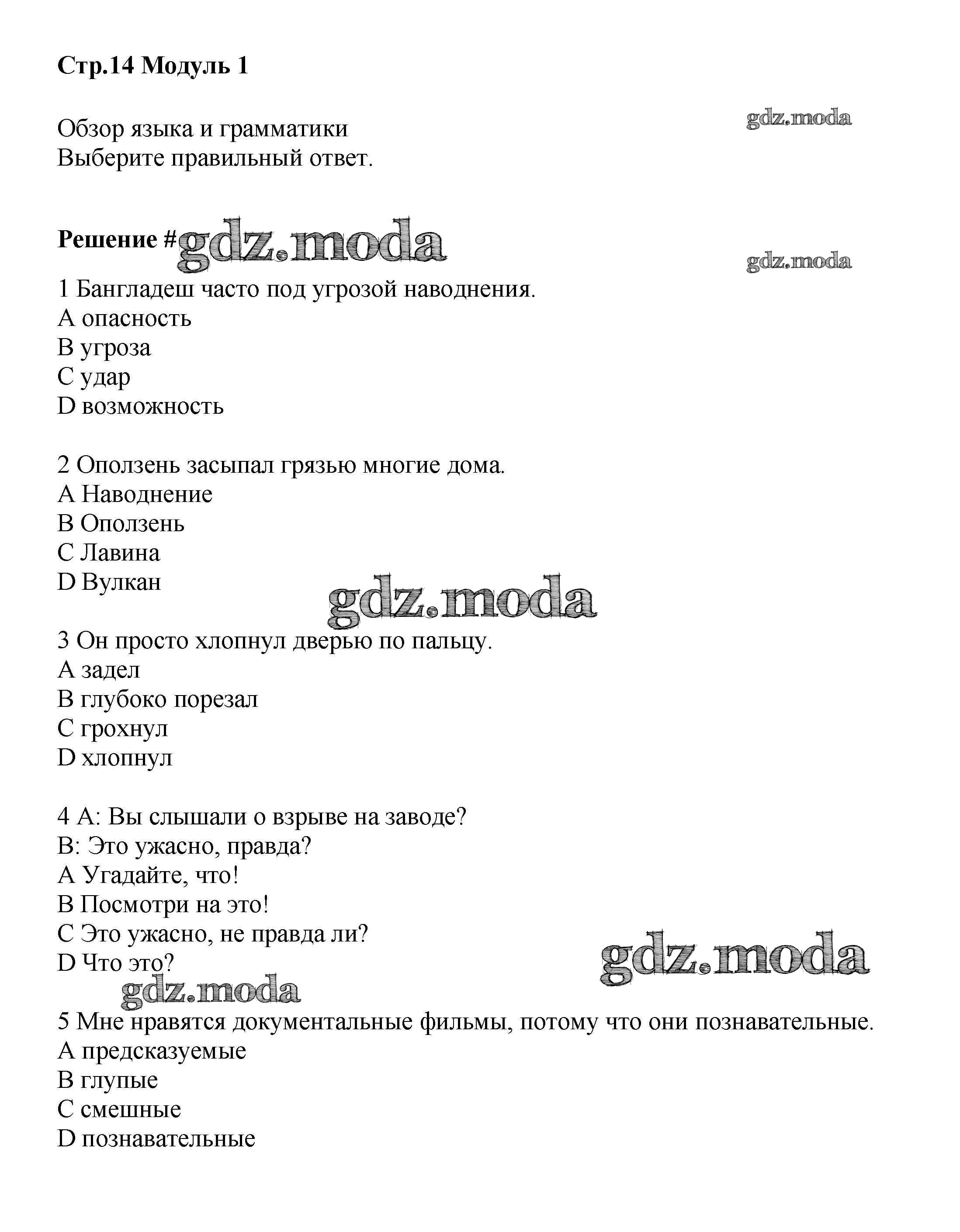 ГДЗ решение к заданию № стр.14 Английский язык 8 класс рабочая тетрадь Starlight Баранова К.М. Просвещение 2015 Углубленный уровень ФГОС бесплатно на гдз.мода!