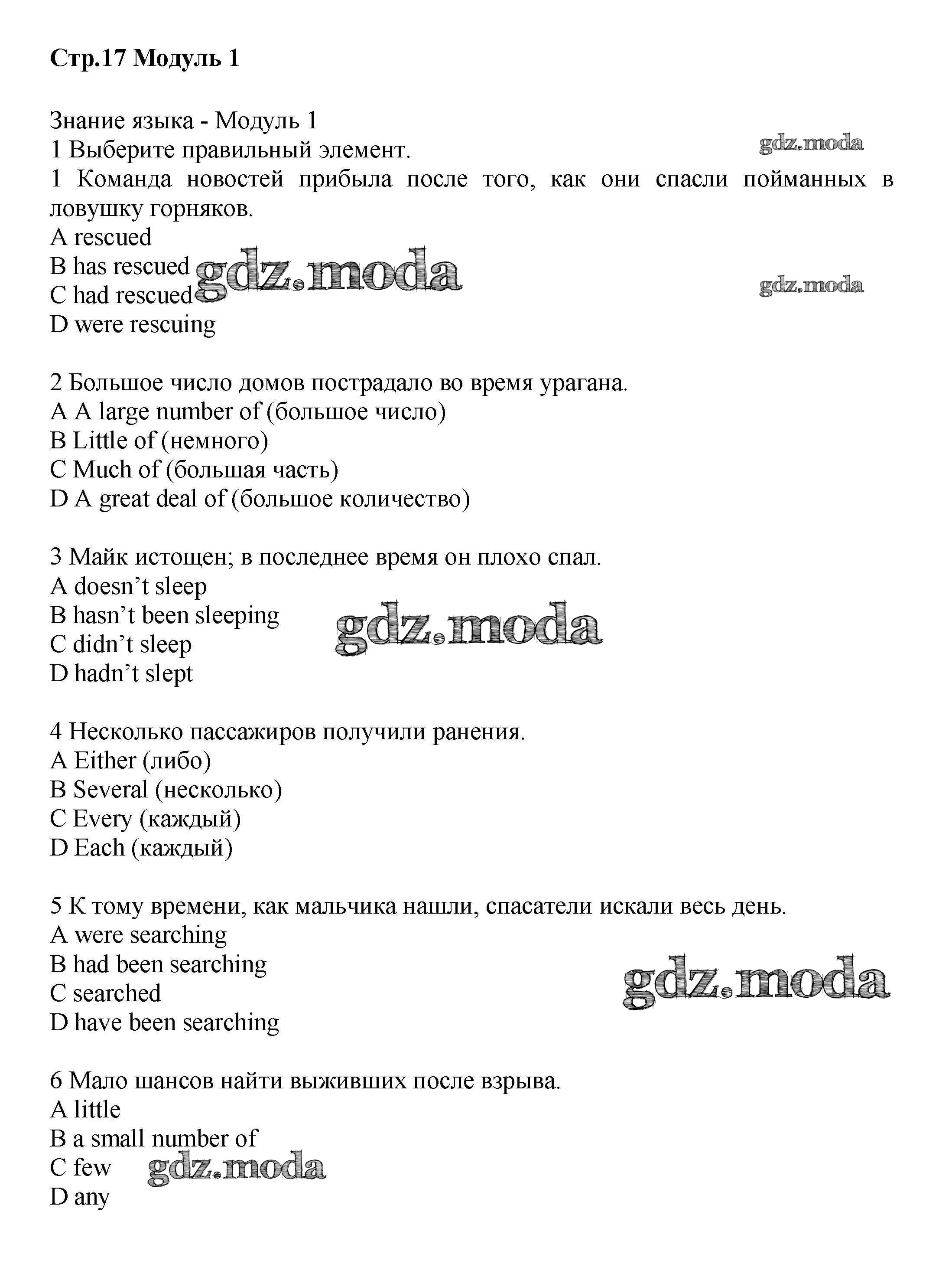 ГДЗ решение к заданию № стр.17 Английский язык 8 класс рабочая тетрадь Starlight Баранова К.М. Просвещение 2015 Углубленный уровень ФГОС бесплатно на гдз.мода!
