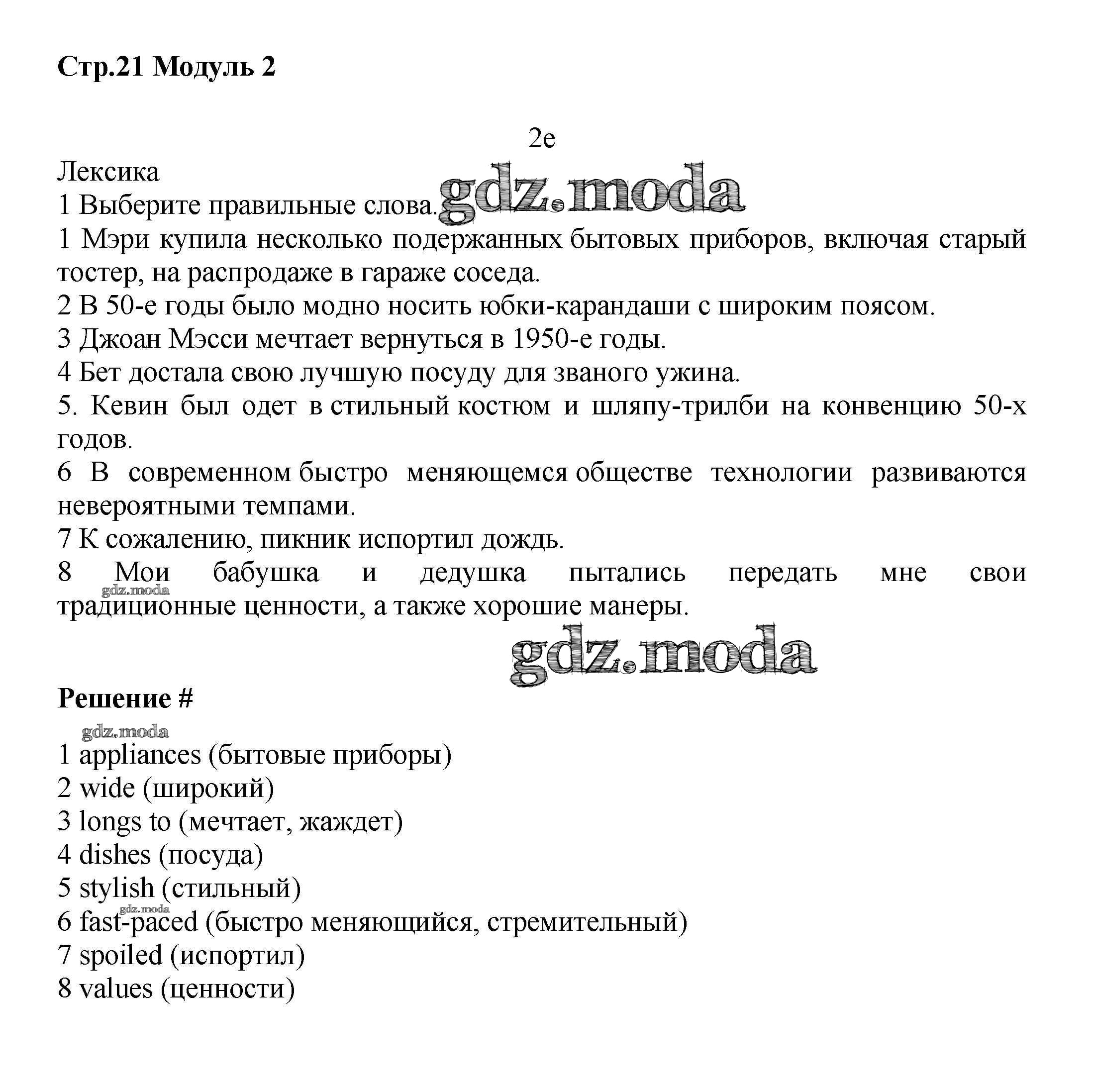 ГДЗ решение к заданию № стр.21 Английский язык 8 класс рабочая тетрадь Starlight Баранова К.М. Просвещение 2015 Углубленный уровень ФГОС бесплатно на гдз.мода!