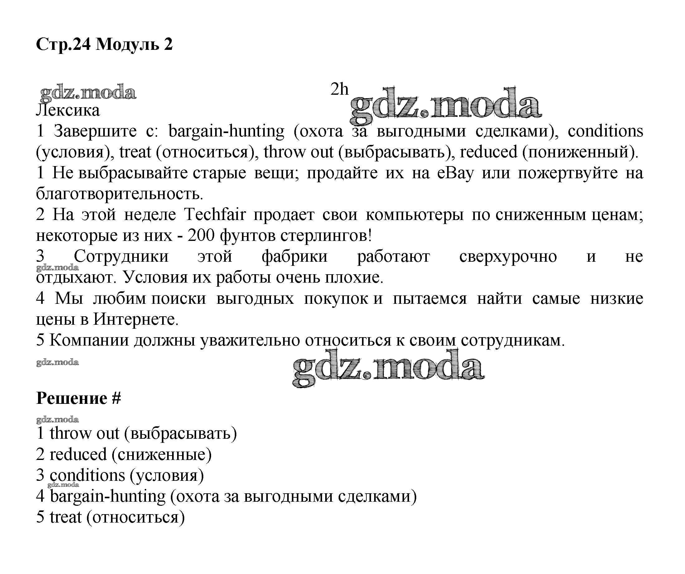 ГДЗ решение к заданию № стр.24 Английский язык 8 класс рабочая тетрадь Starlight Баранова К.М. Просвещение 2015 Углубленный уровень ФГОС бесплатно на гдз.мода!