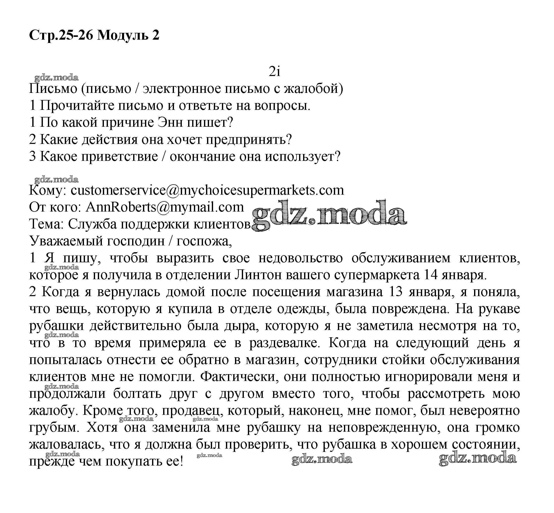 ГДЗ решение к заданию № стр.25-26 Английский язык 8 класс рабочая тетрадь Starlight Баранова К.М. Просвещение 2015 Углубленный уровень ФГОС бесплатно на гдз.мода!