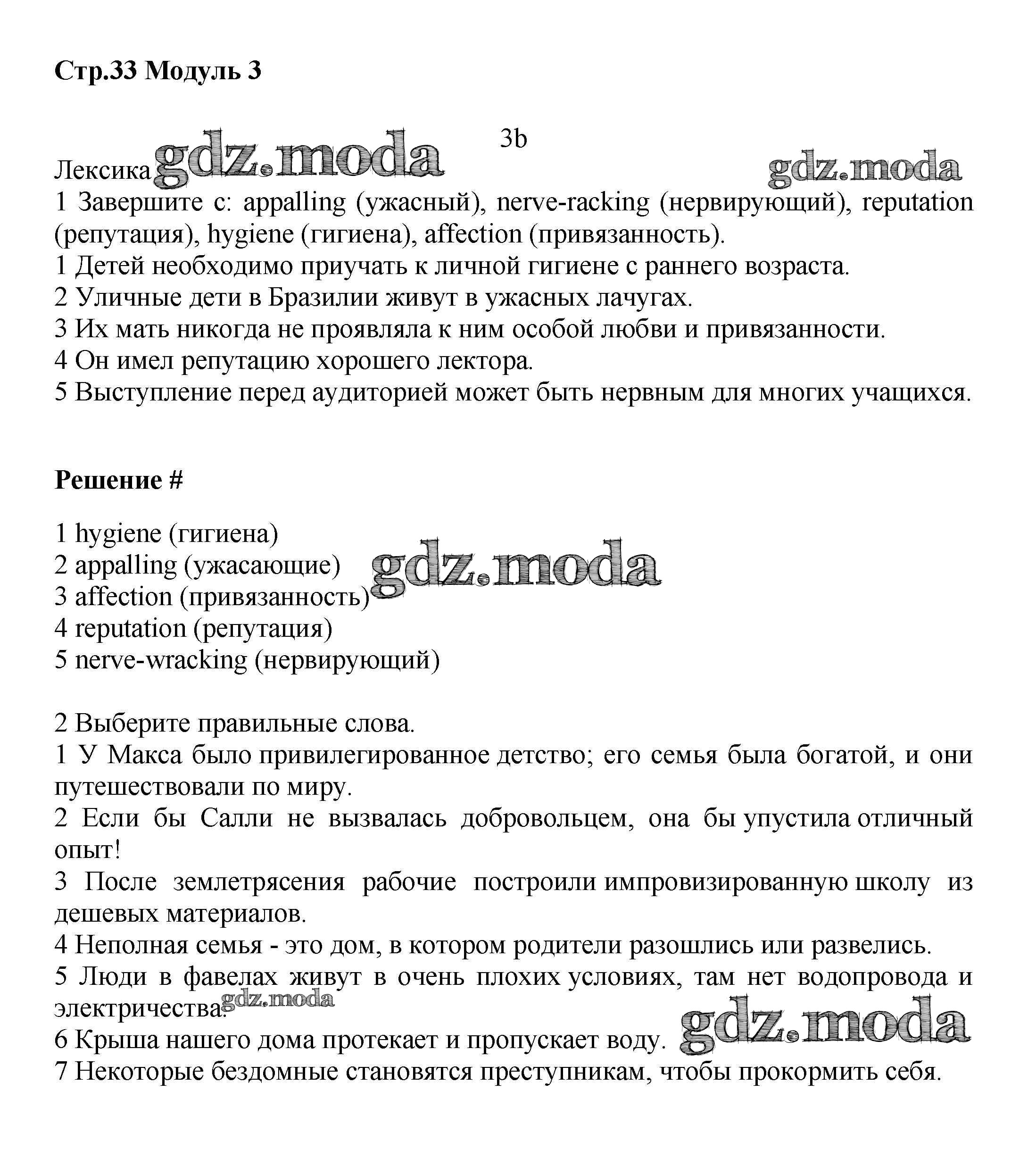 ГДЗ решение к заданию № стр.33 Английский язык 8 класс рабочая тетрадь Starlight Баранова К.М. Просвещение 2015 Углубленный уровень ФГОС бесплатно на гдз.мода!