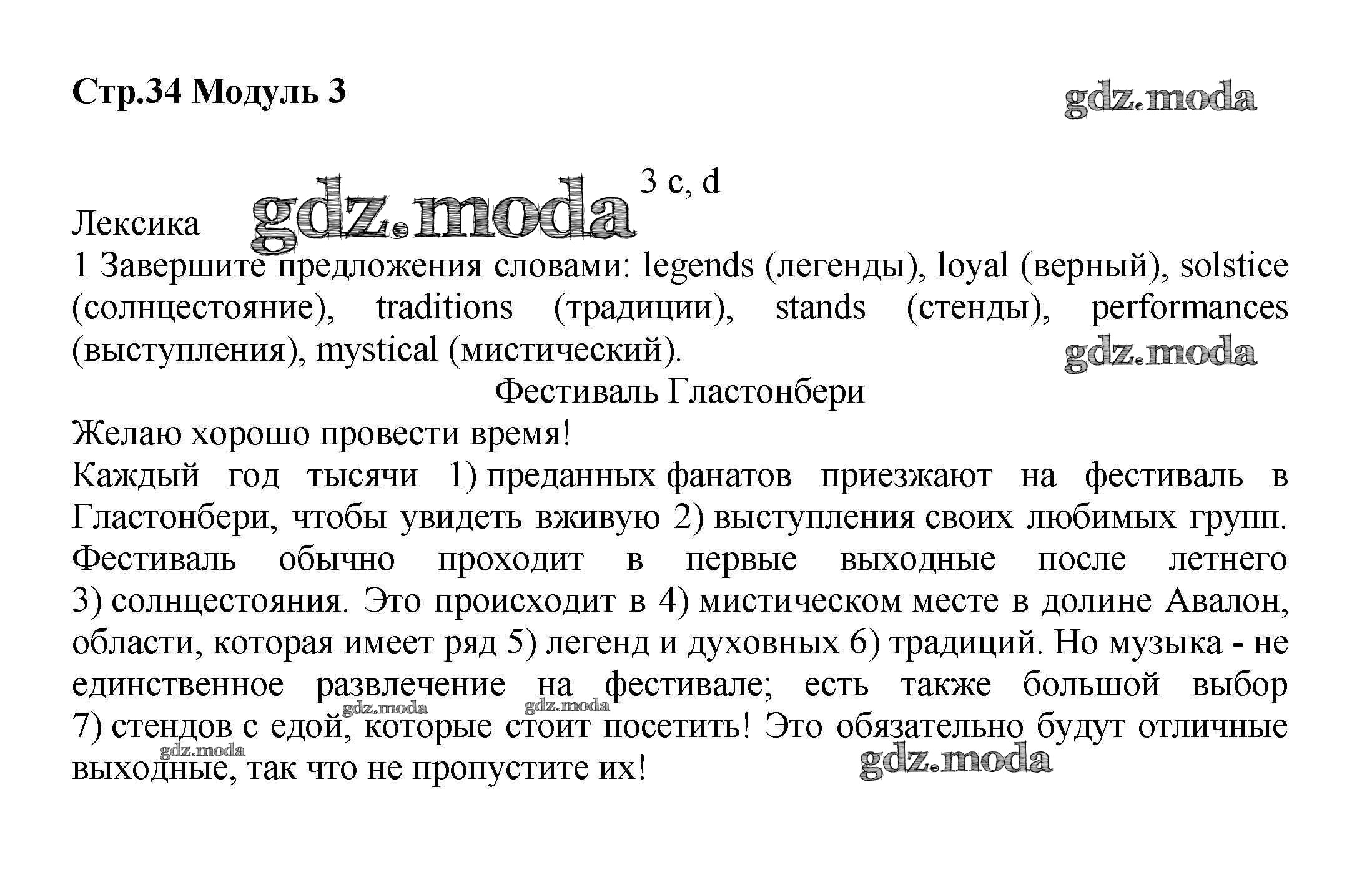 ГДЗ решение к заданию № стр.34 Английский язык 8 класс рабочая тетрадь Starlight Баранова К.М. Просвещение 2015 Углубленный уровень ФГОС бесплатно на гдз.мода!