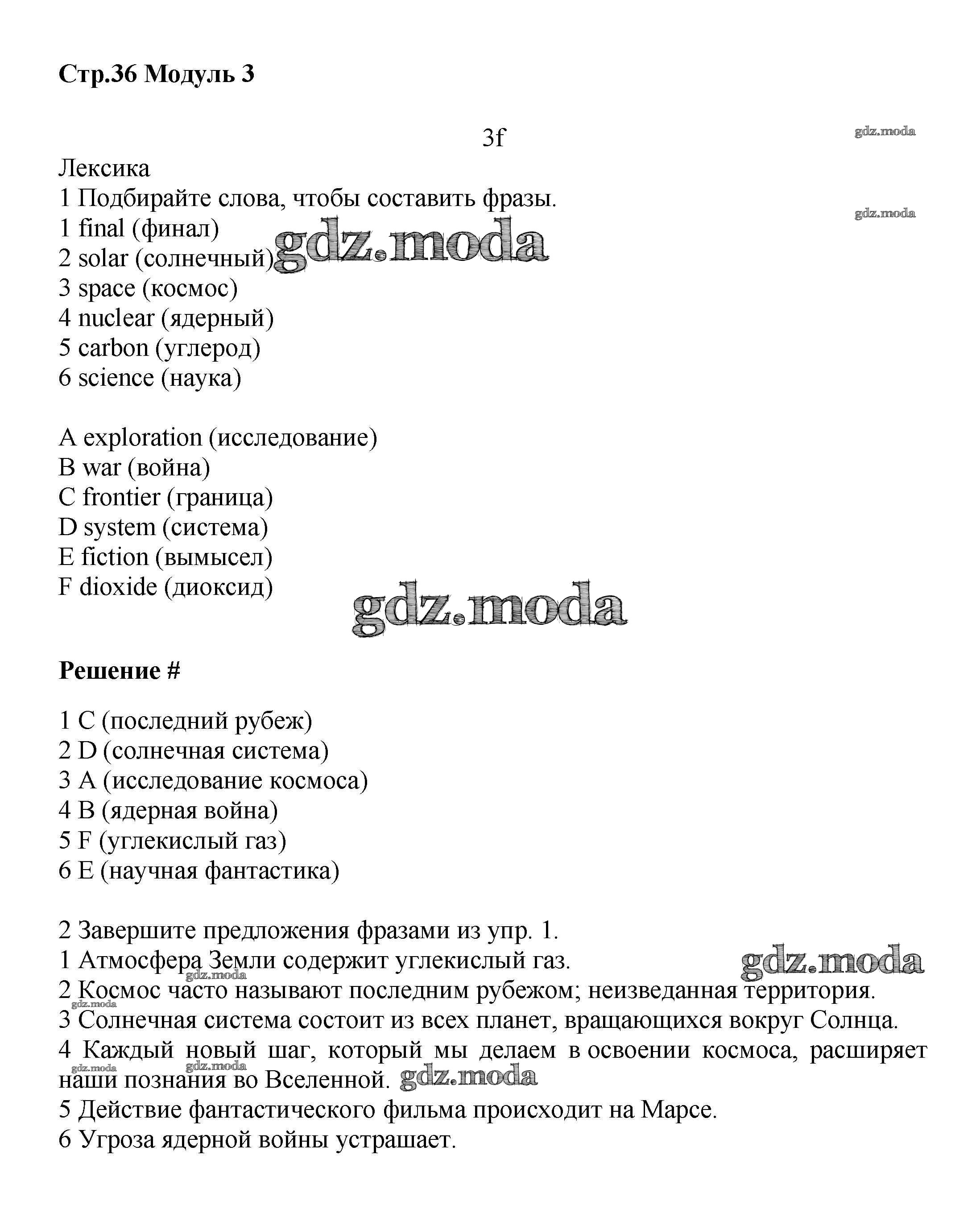 ГДЗ решение к заданию № стр.36 Английский язык 8 класс рабочая тетрадь Starlight Баранова К.М. Просвещение 2015 Углубленный уровень ФГОС бесплатно на гдз.мода!