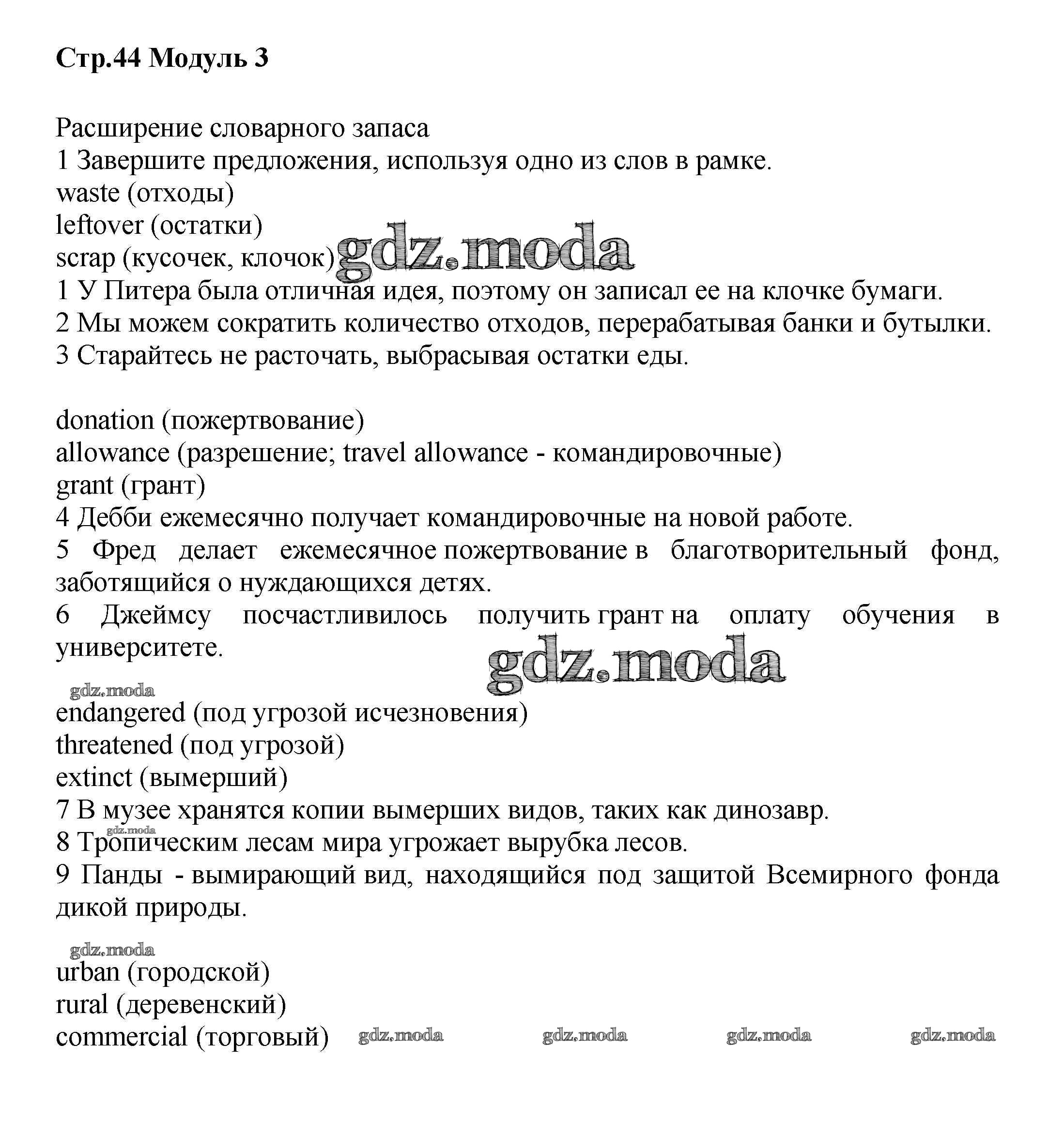 ГДЗ решение к заданию № стр.44 Английский язык 8 класс рабочая тетрадь Starlight Баранова К.М. Просвещение 2015 Углубленный уровень ФГОС бесплатно на гдз.мода!