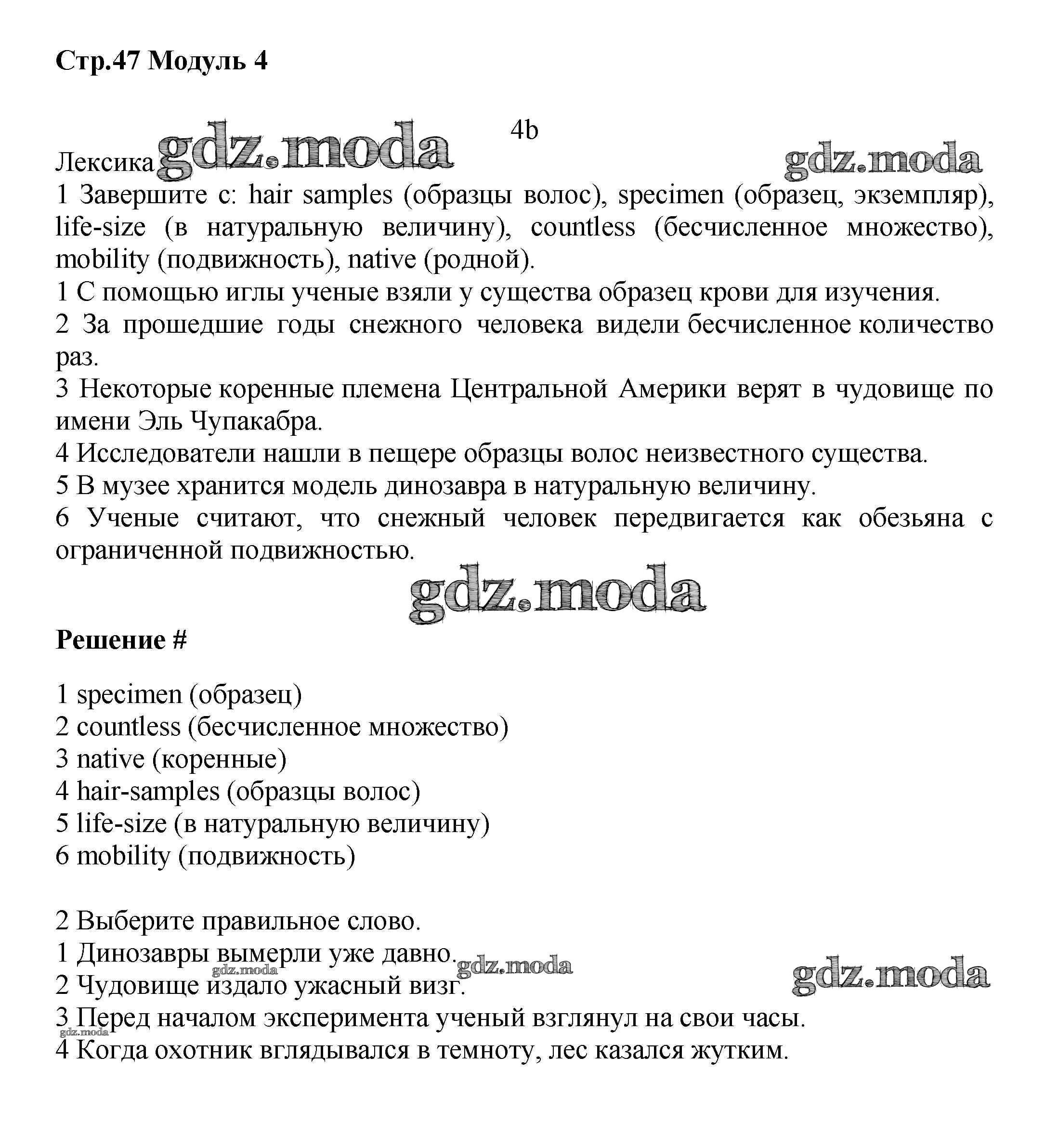 ГДЗ решение к заданию № стр.47 Английский язык 8 класс рабочая тетрадь Starlight Баранова К.М. Просвещение 2015 Углубленный уровень ФГОС бесплатно на гдз.мода!